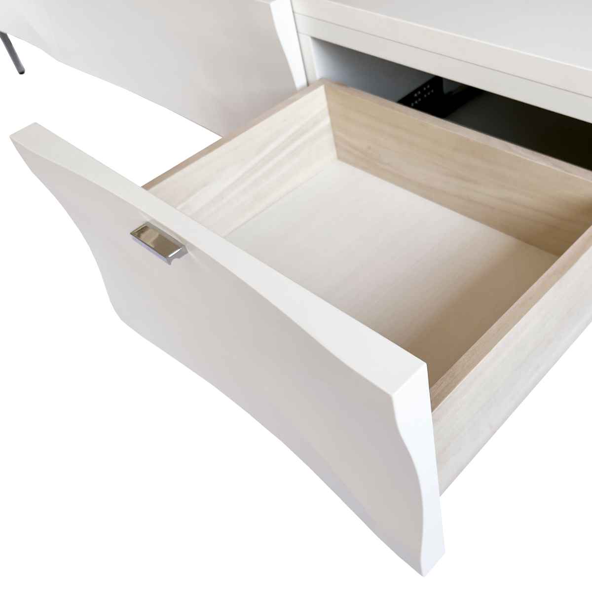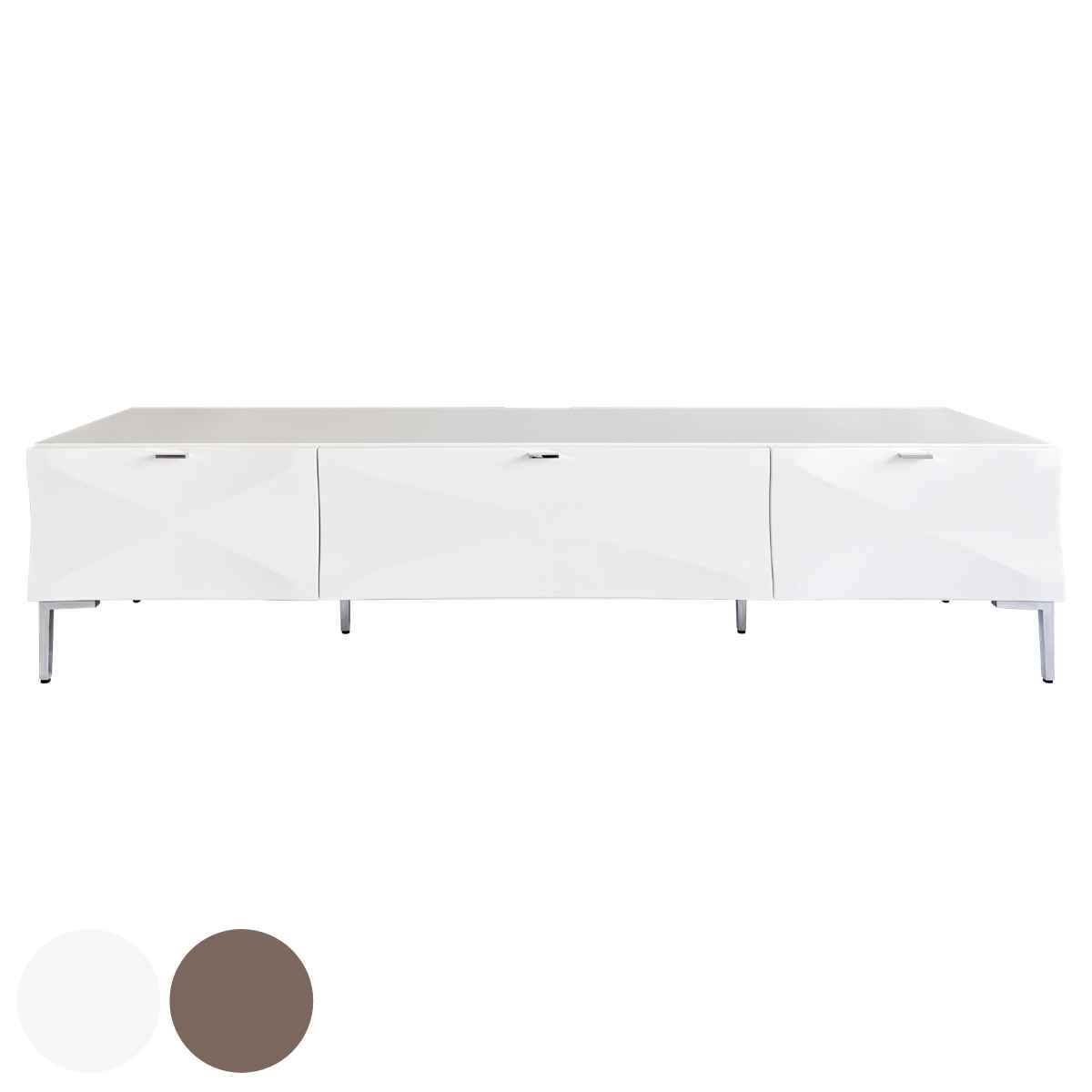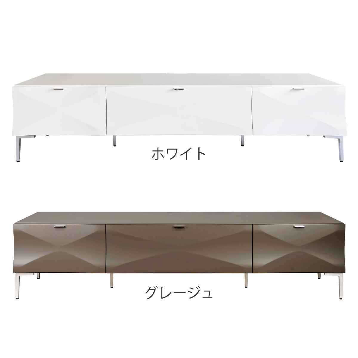 前板の曲面ダイヤカットが美しく、洗練されたデザインが特徴のローボードです。カラーは、明るい印象のホワイト、人気のグレージュの2色ご用意しています。
