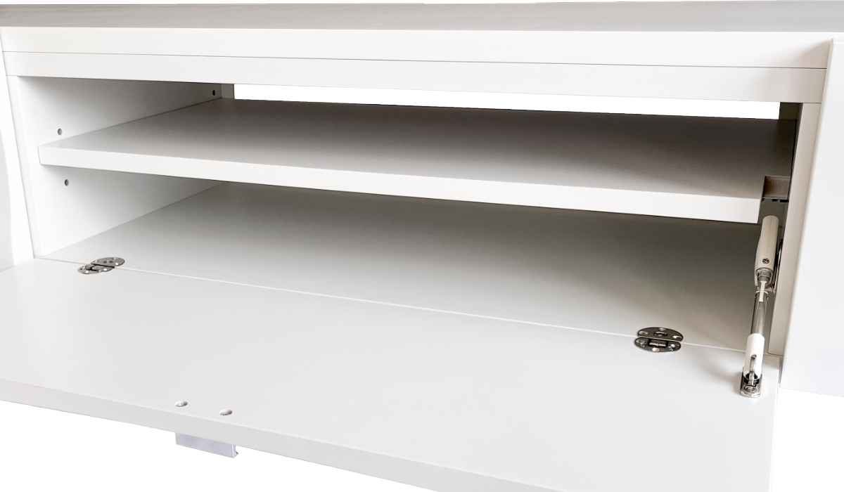 高級感が漂う扉内には、可動式の板が1枚付いているので、収納する物の高さに合わせて調整できます。板は3段階の調整が可能です。AV機器が2台置ける収納になっており、AV機器を置くのにとっても便利です。