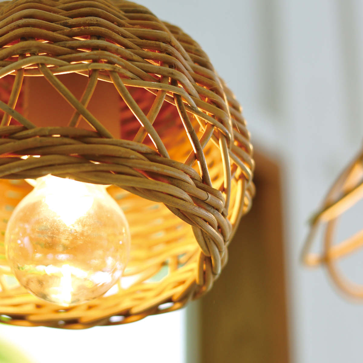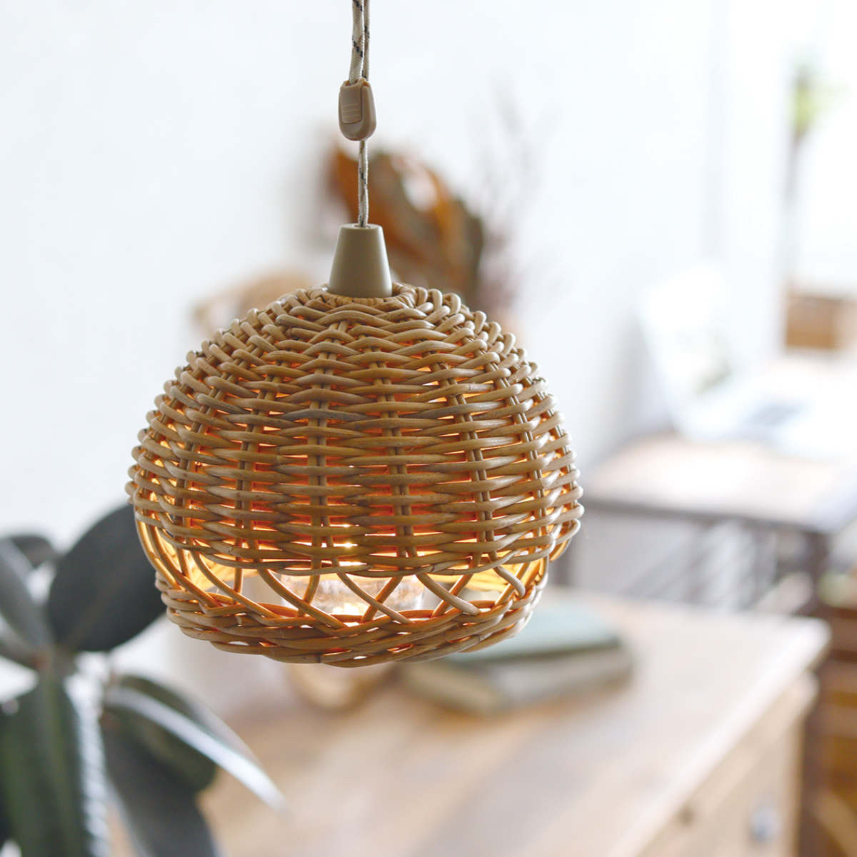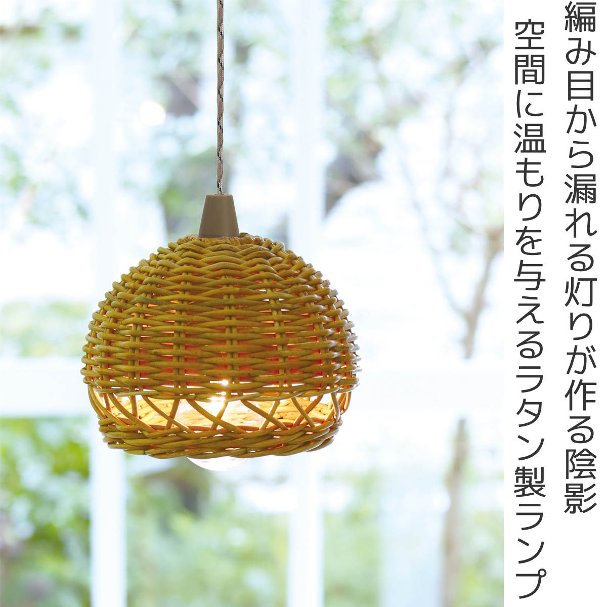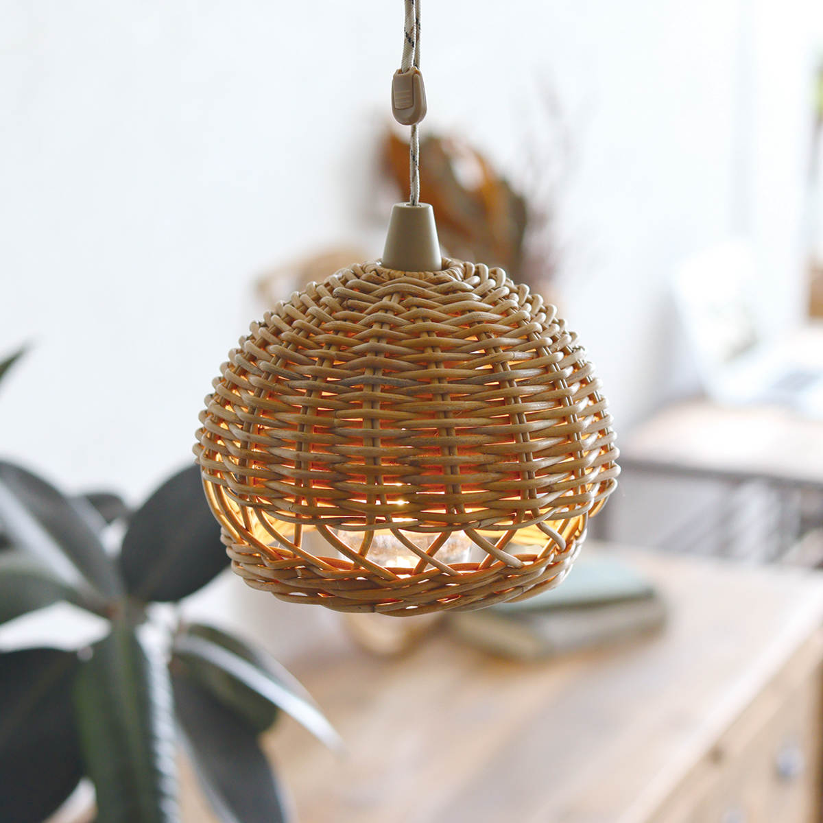 ●編み目から漏れる灯りがあたたかな印象のラタン製シェードハングランプです。