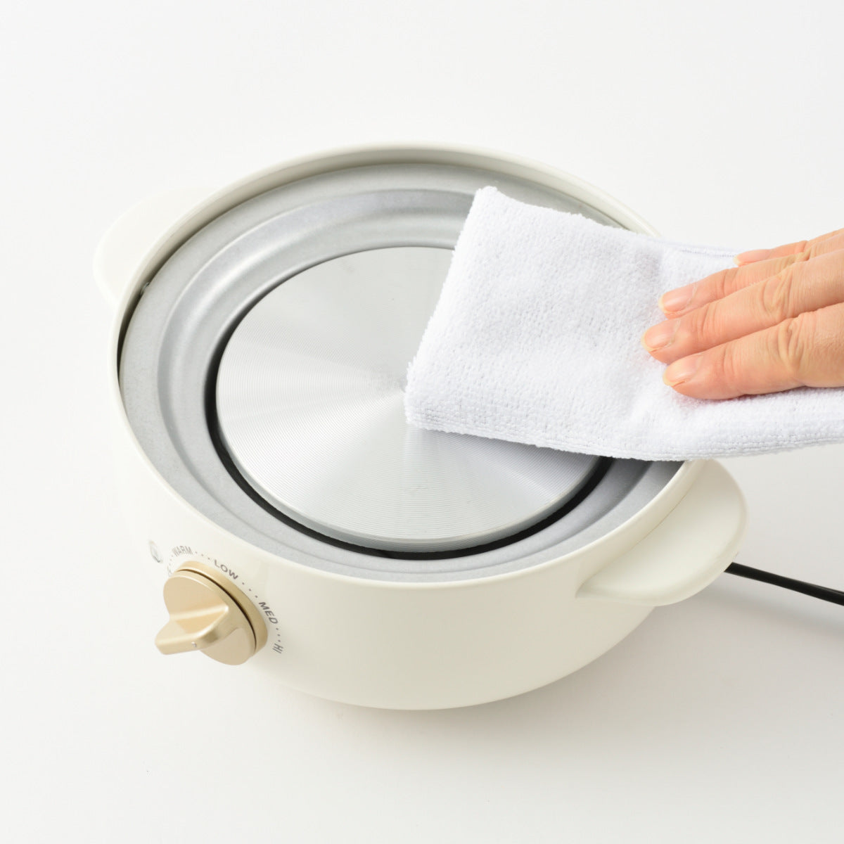 本体は、汚れたらサッと拭き取りやすい構造です。本体以外の各プレートは丸洗い可能で、お手入れが簡単です。
