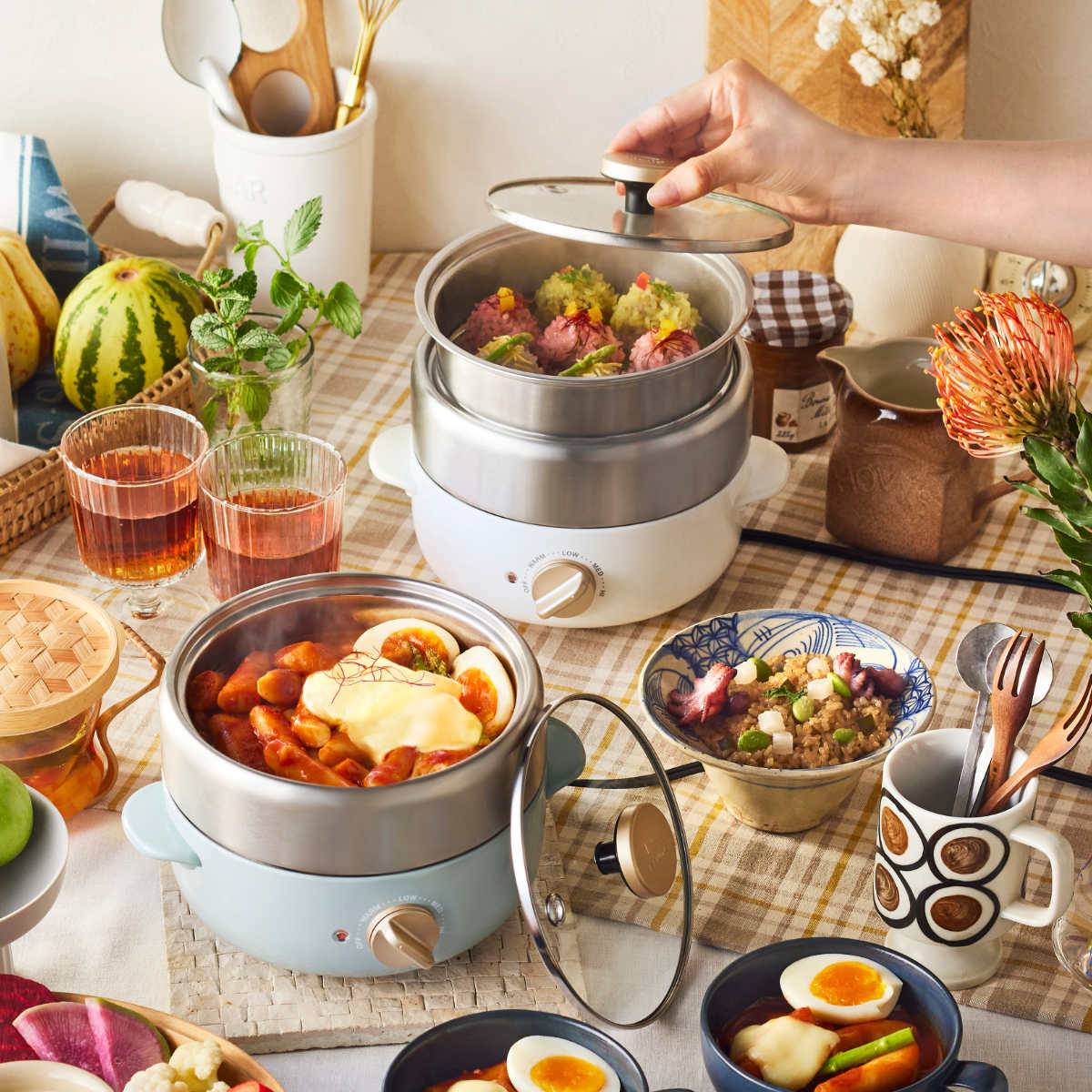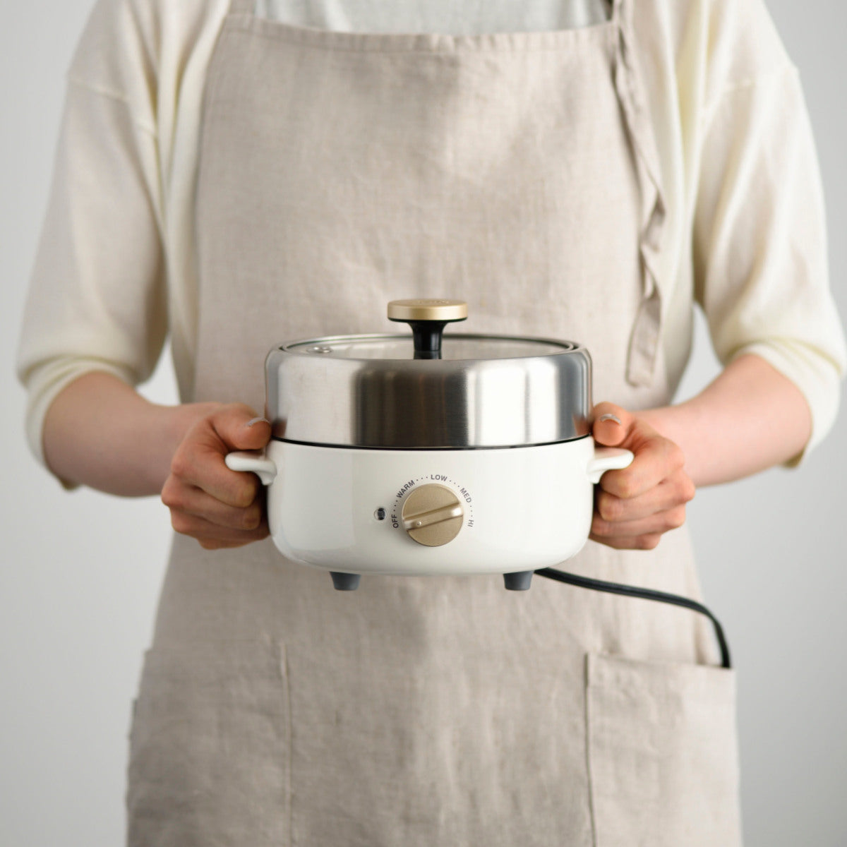 1~2人分の食卓にちょうどいいコンパクトサイズの卓上電気鍋です。毎日使えるなじみのよい色合いの「うつわ」をイメージしたカラーもポイントです。
