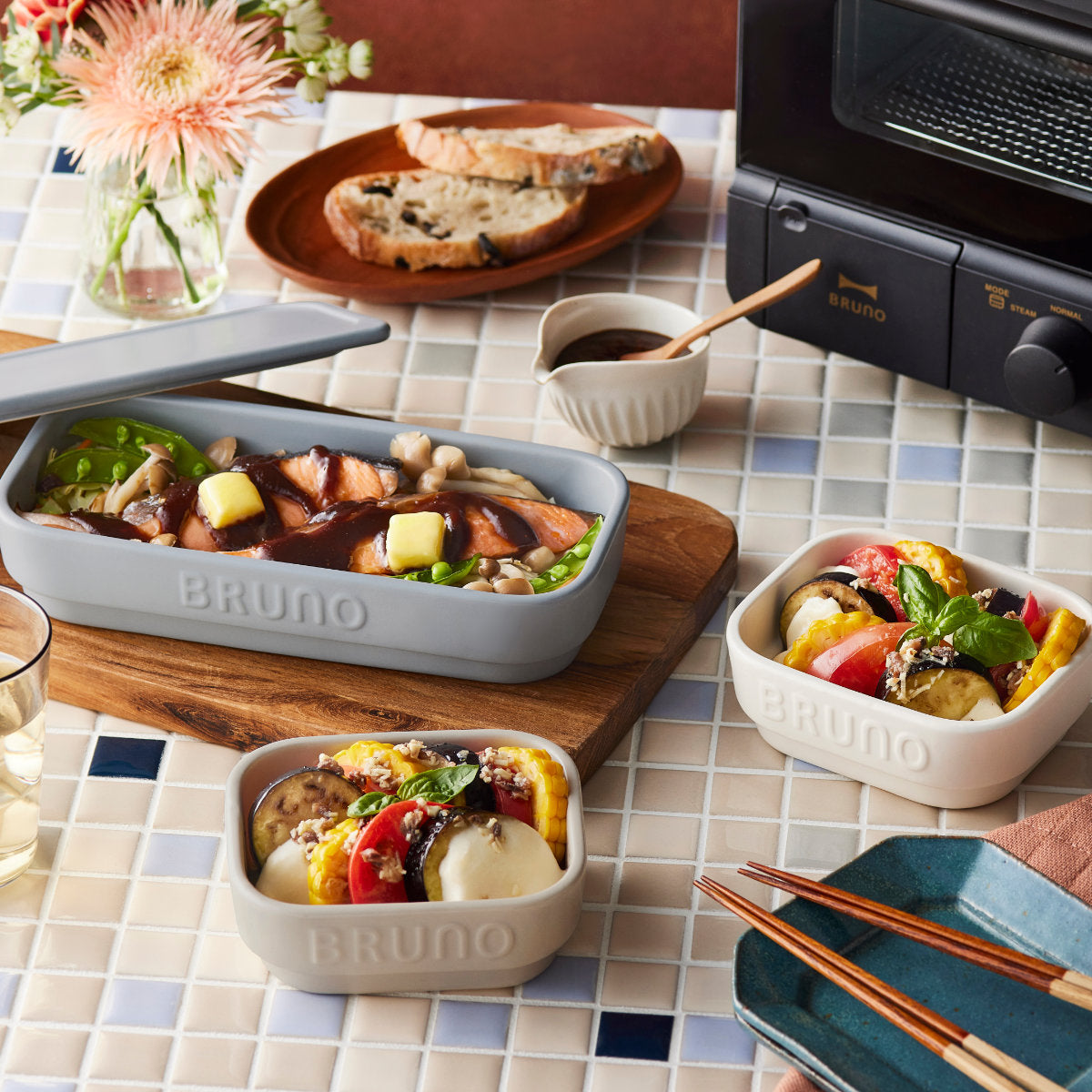 トースターで調理したら、そのままできたてを食卓に。やや丸みをおびたフォルムと優しいニュアンスカラーで、料理を引き立てながらテーブルを彩ります。ひとり分ずつ取り分けてサーブしたいお料理にも便利に使える大きさなので、トースター調理だけでなく普段使いの食器としてもおすすめです。