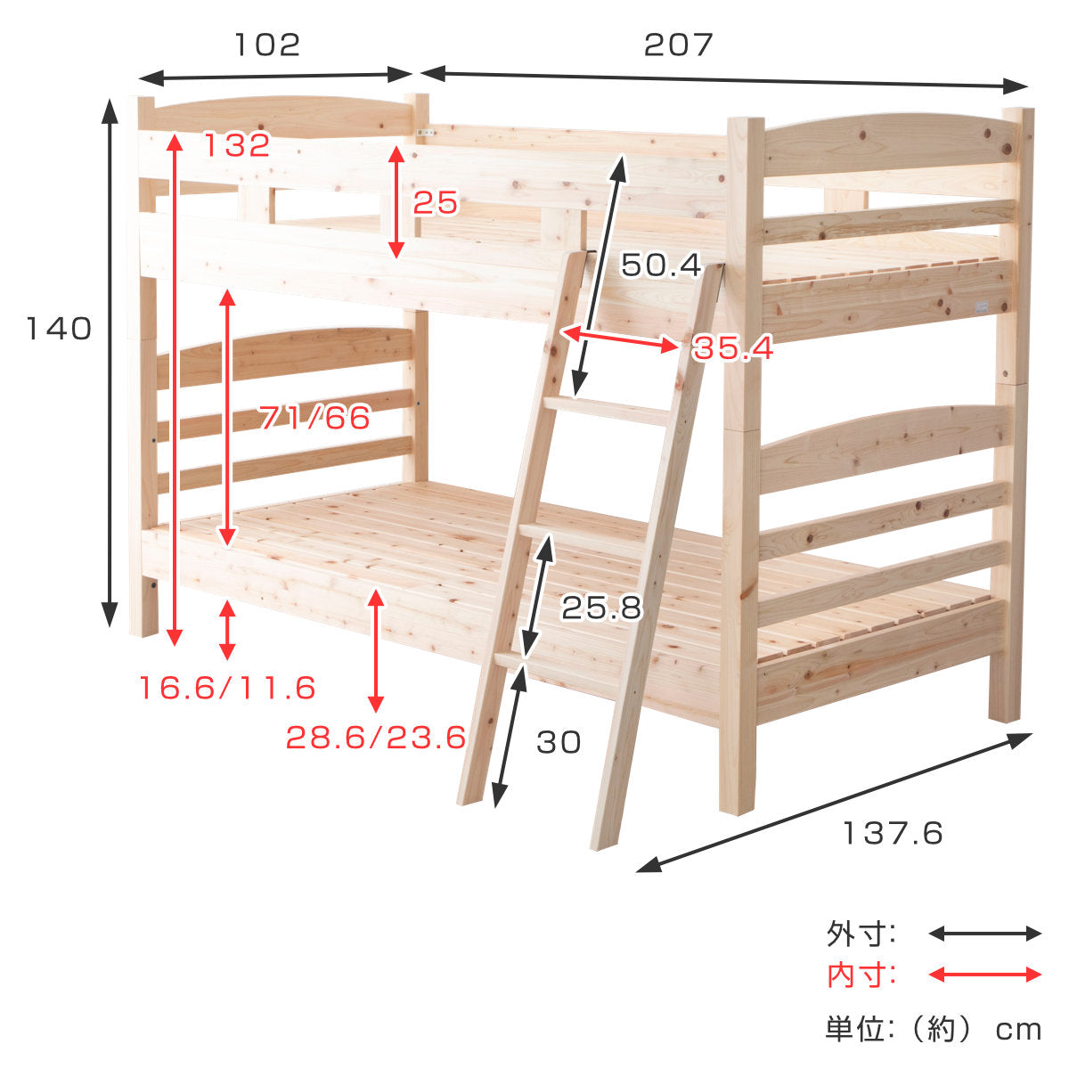 国産ひのきを使用した安心の2段ベッド シングル