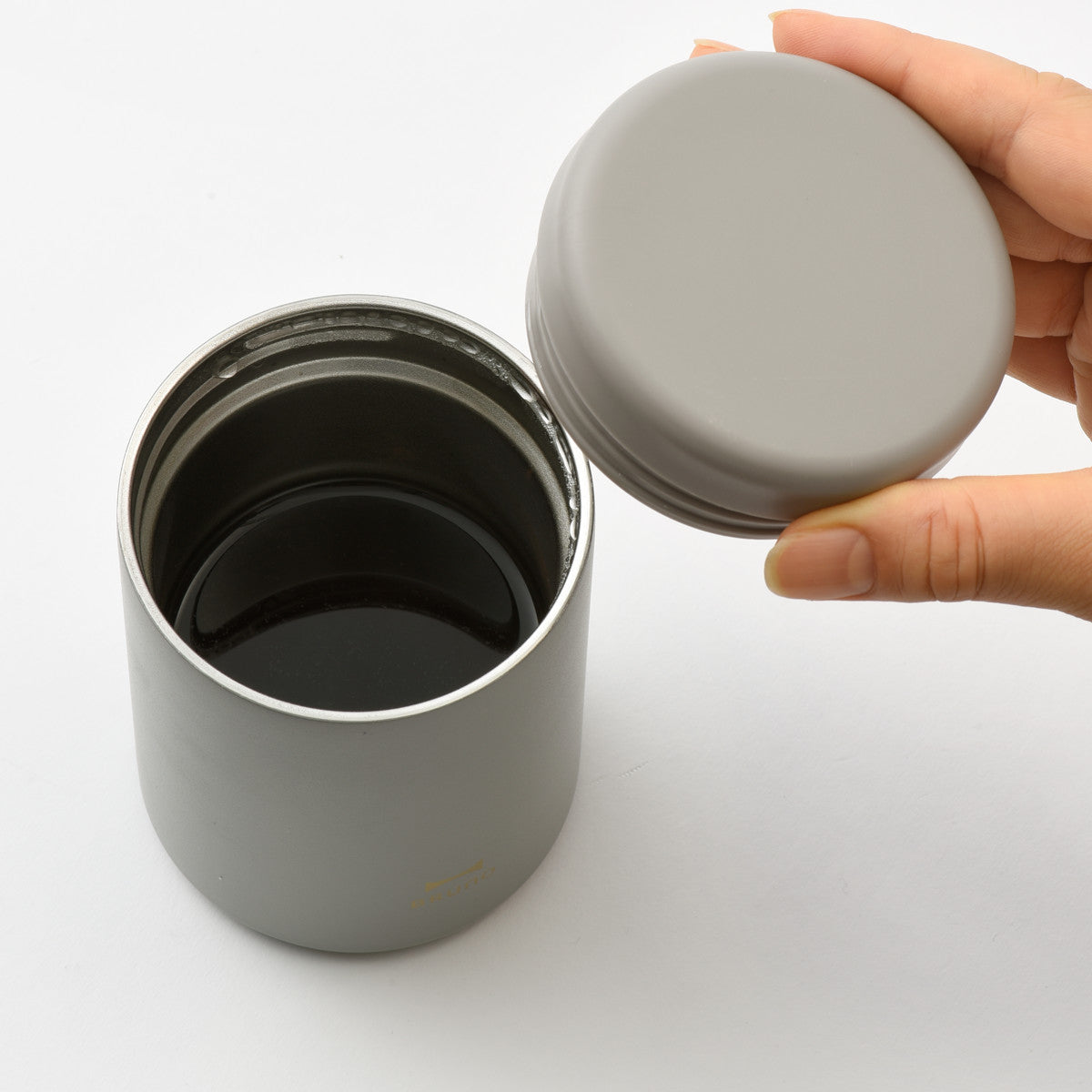 カフェによってはSサイズ約240mlのコーヒーができます。カップは真空二重構造のステンレスカップなのでしっかり保温したまま持ち運べます。本体の上にあるフタをカップのフタとして使用できます。