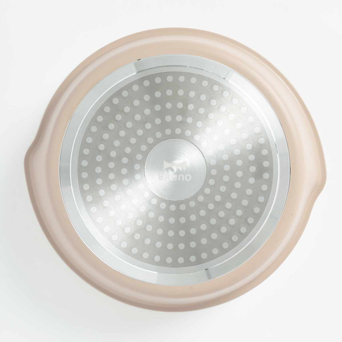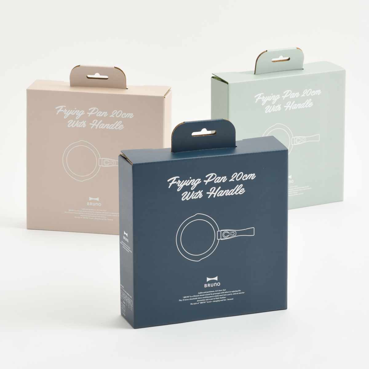BRUNOらしいニュアンスカラーが素敵な取っ手が外せるフライパンと取っ手のセットです。お弁当や朝食作りに便利な20cmサイズです。調理したあと、そのまま食器として使いたくなるような、お皿の形状にもこだわったフライパンです。