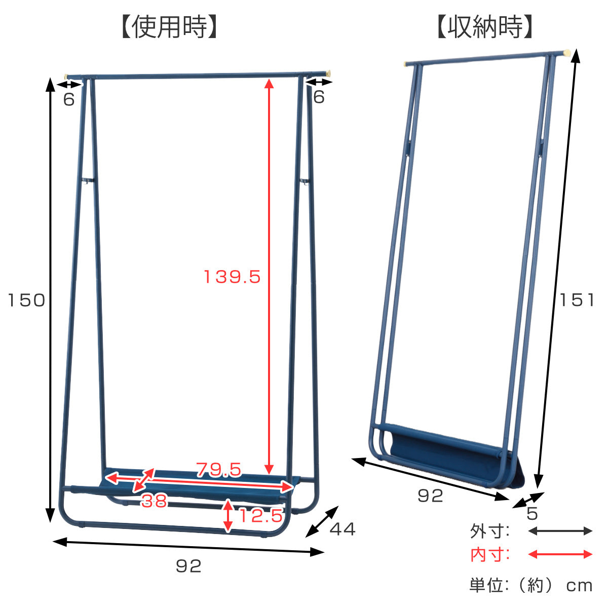 サイズ | 使用時:約 幅92×奥行44×高さ150cm 収納時:約 幅92×奥行5×高さ151cm |