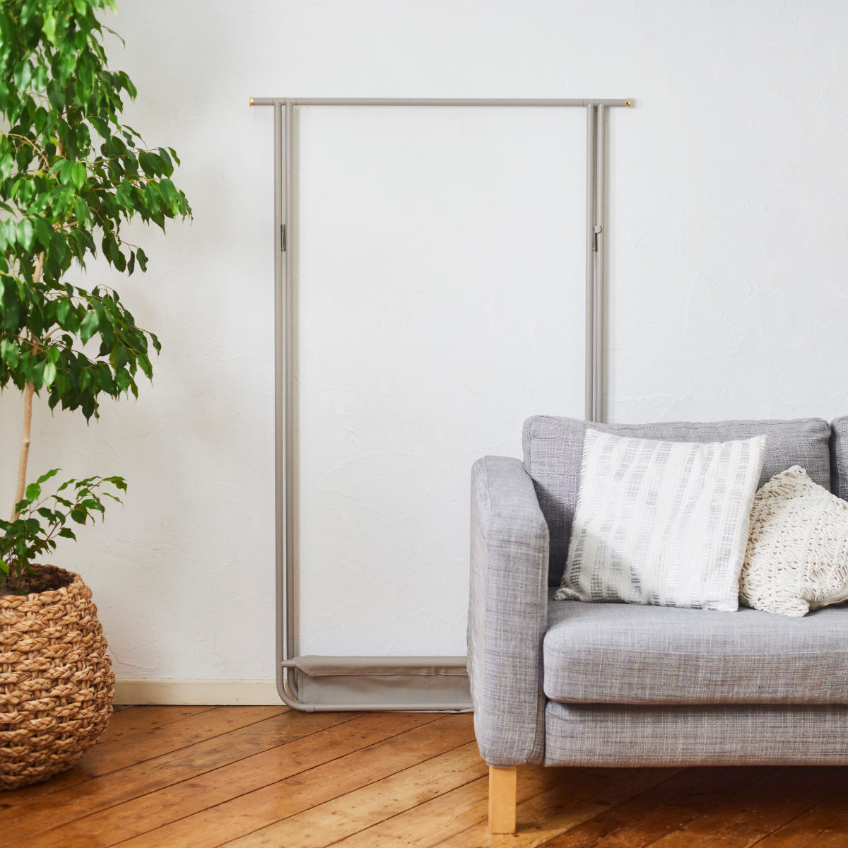 使わないときは折りたたんでクローゼットやちょっとしたスペースに収納できます。ファブリックラックを取り付けた状態での収納も可能なので、サッとたためます。