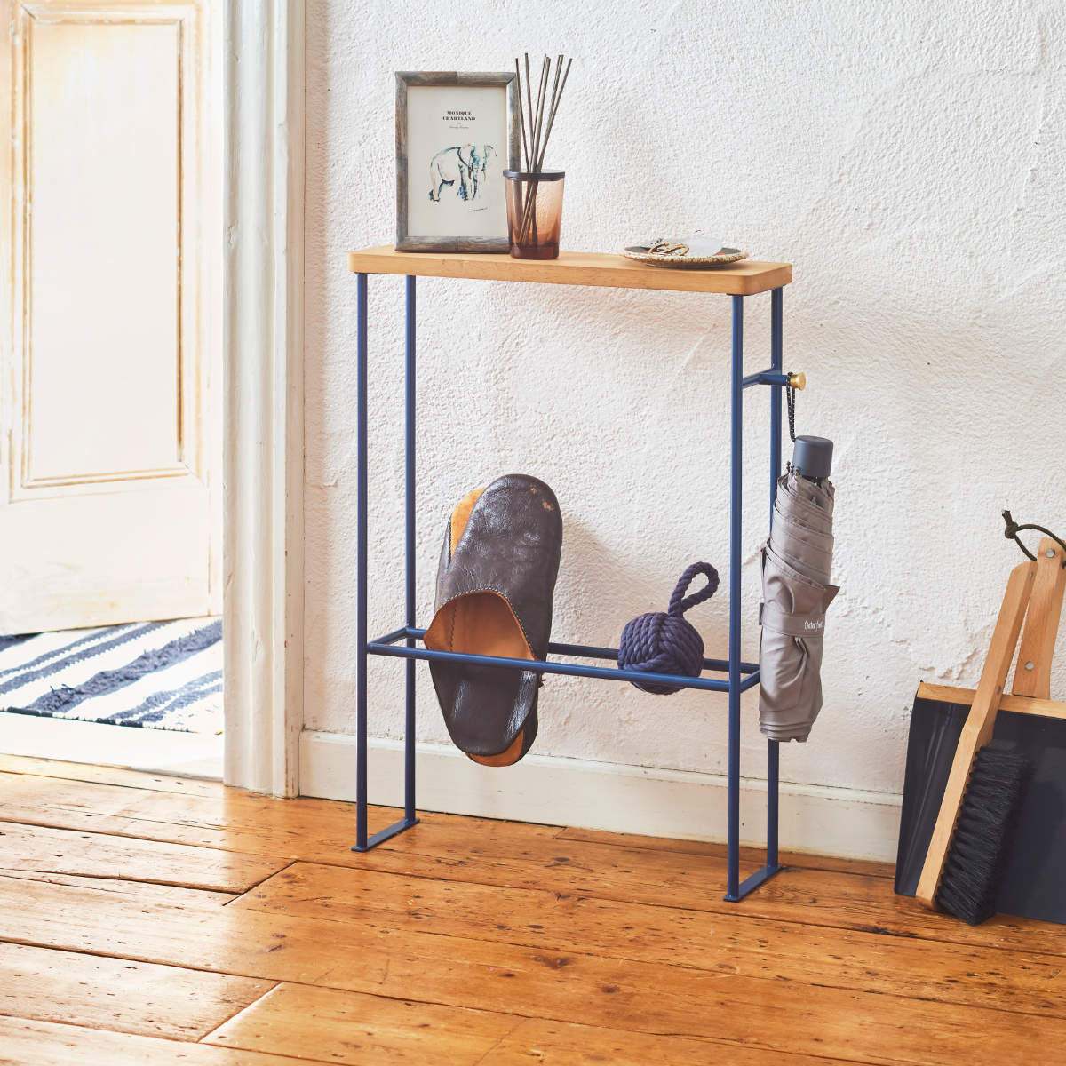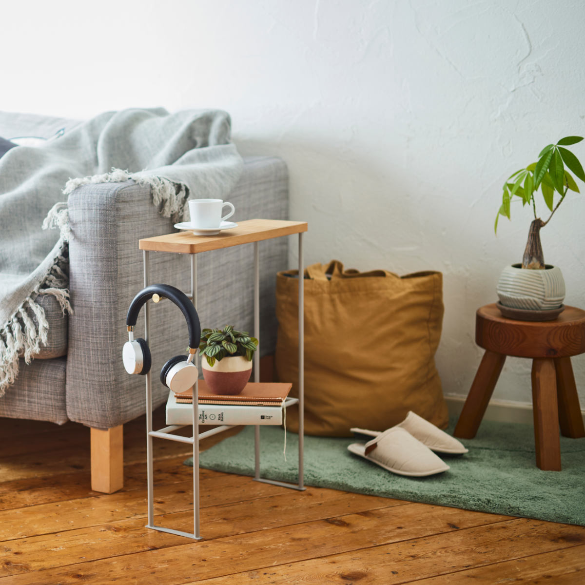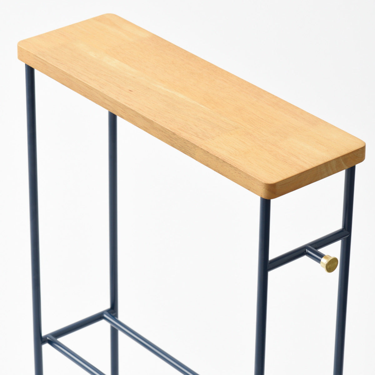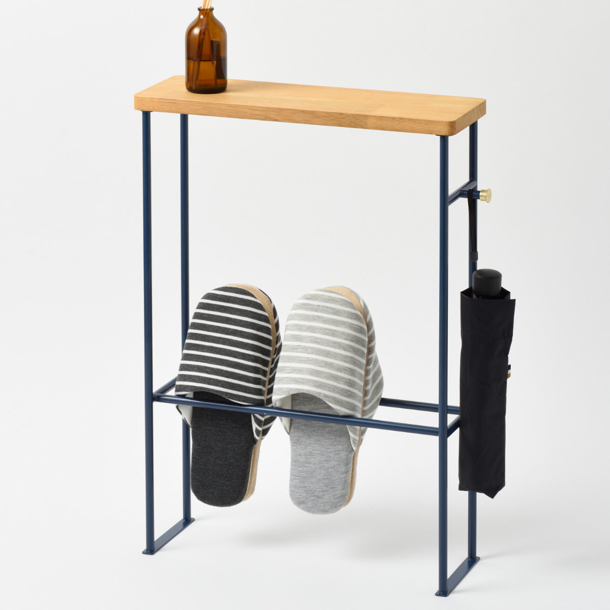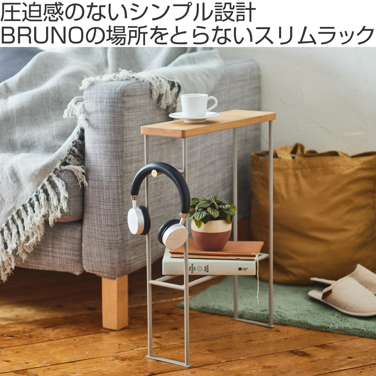 スチールフレームに天然木の天板を組み合わせたスリムラックです。玄関でスリッパ収納&小物置きとして、リビングのサイドテーブル&小物収納としてなど、さまざまな空間で使用できます。BRUNOらしいカラーリングのラックは、インテリアになじみやすいです。
