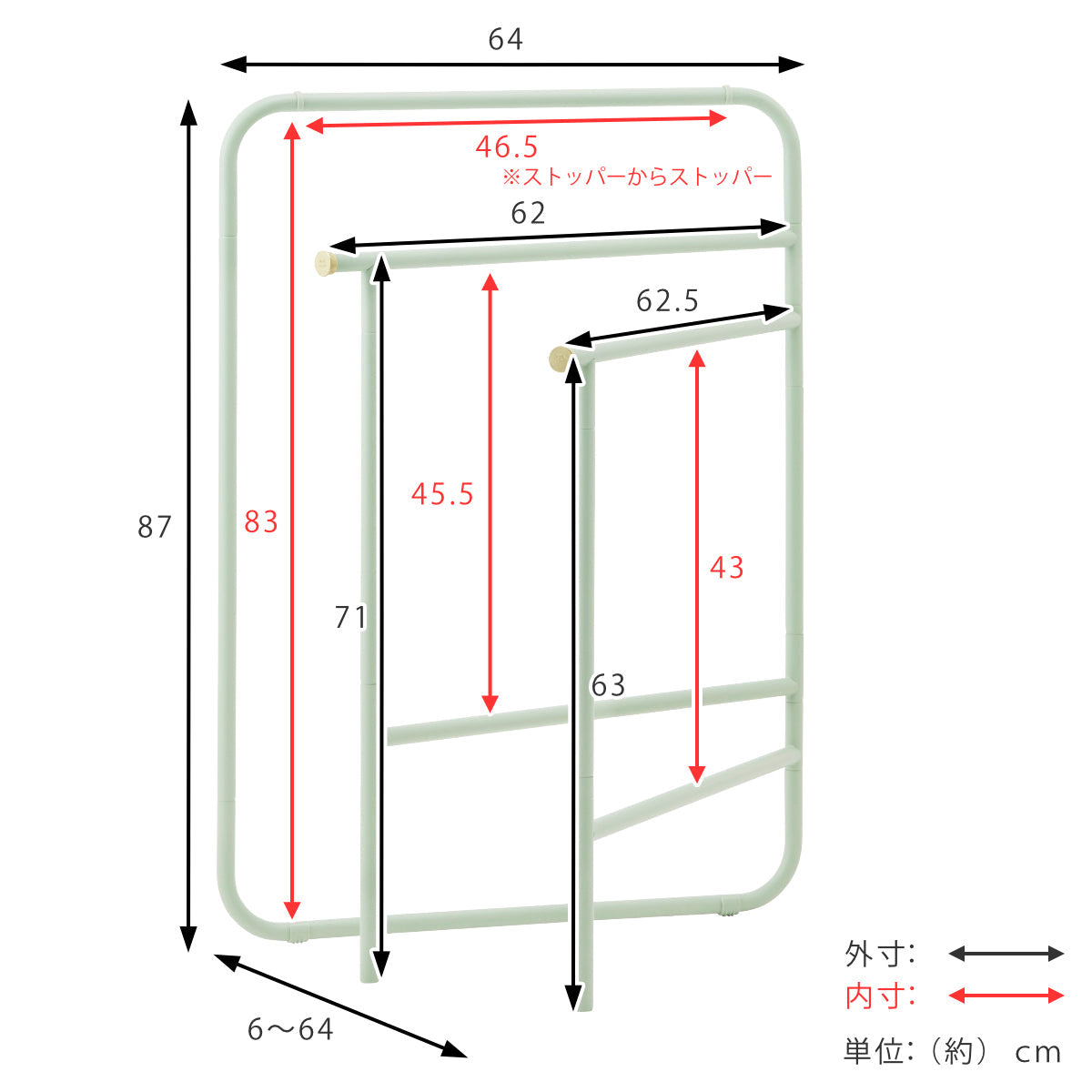 サイズ | 使用時:約 幅64×奥行6~64×高さ87cm 収納時:約 幅64×奥行6×高さ87cm |