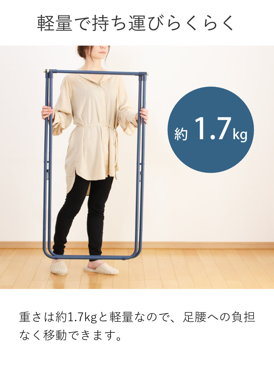 重さ約1.7kgでひょいっと持ち上げられるので移動が簡単。足腰への負担なく運べます。