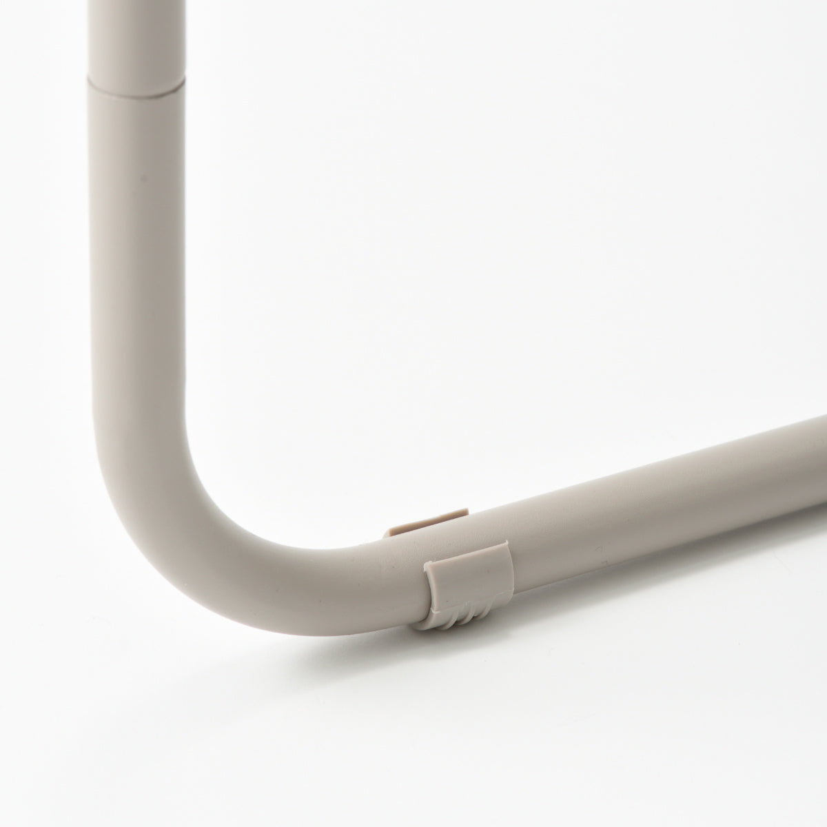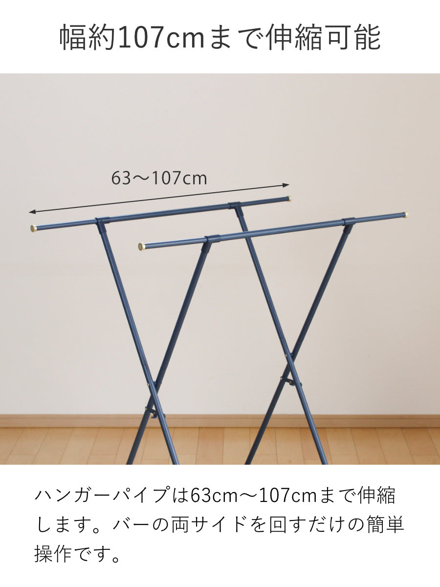ハンガーパイプは、63cm~107cmまで伸縮します。最大まで伸ばして、一般的なシングルサイズの布団(横100cm×縦200cm)がちょうど干せるぐらいのサイズです。