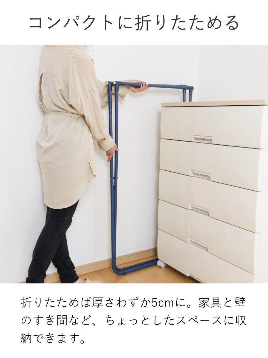 折りたためば厚さ5cmなので、使わないときは折りたたんで、家具と壁の隙間などちょっとしたスペースに収納できます。