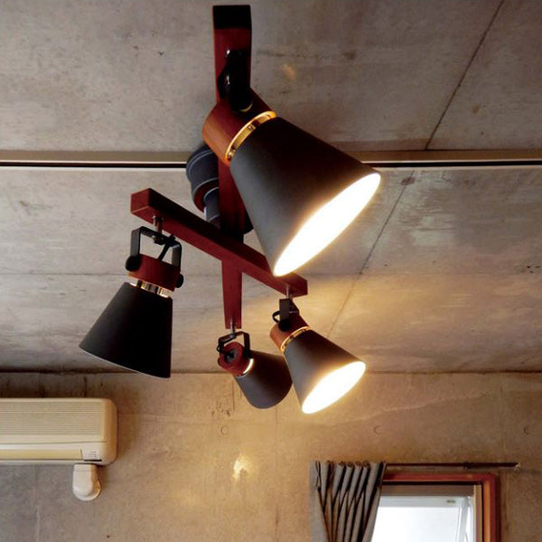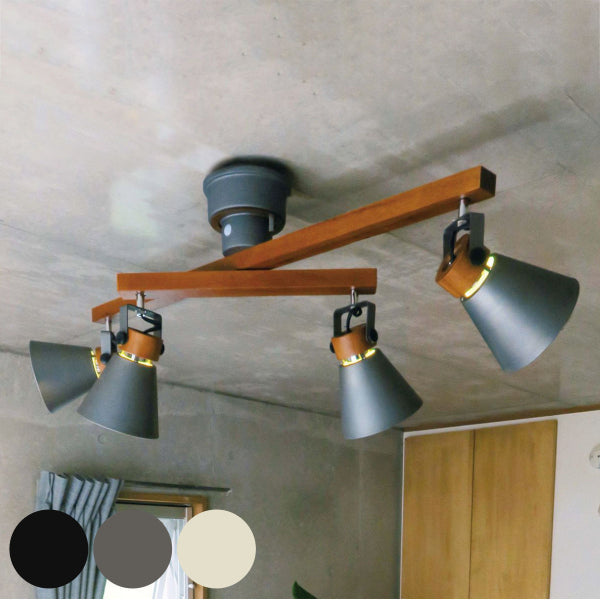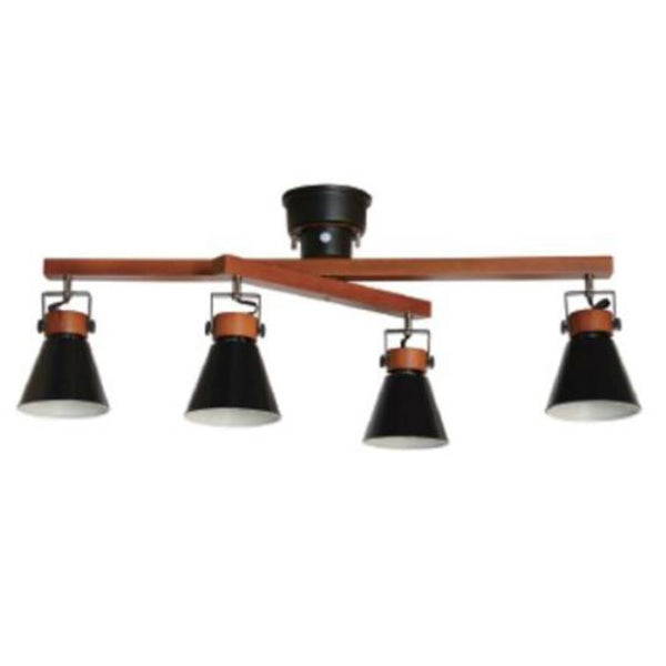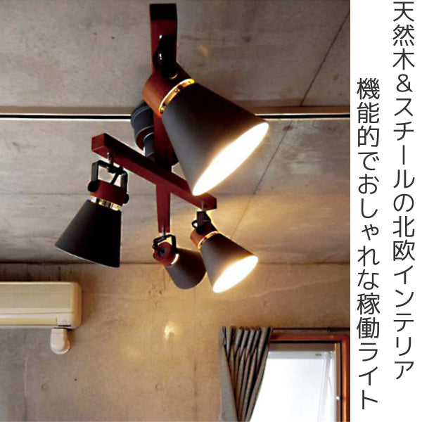 二重の可動式4灯シーリングライトです。天然木とスチールでつくられており、北欧テイストでインテリアに馴染みやすく、おしゃれなデザインです。バーを回転させたり、セードの角度を調整することができるので、お部屋に合わせてアレンジしていただけます。