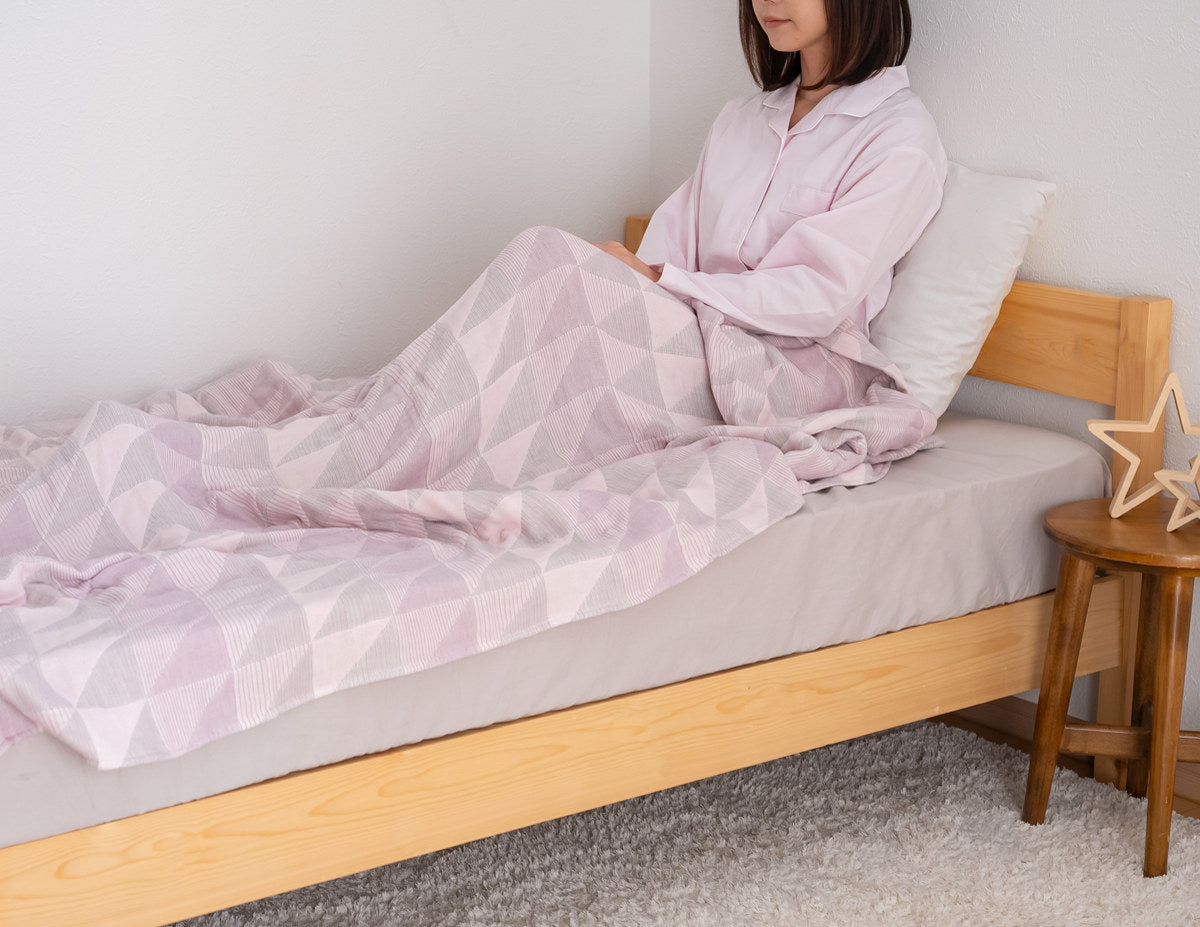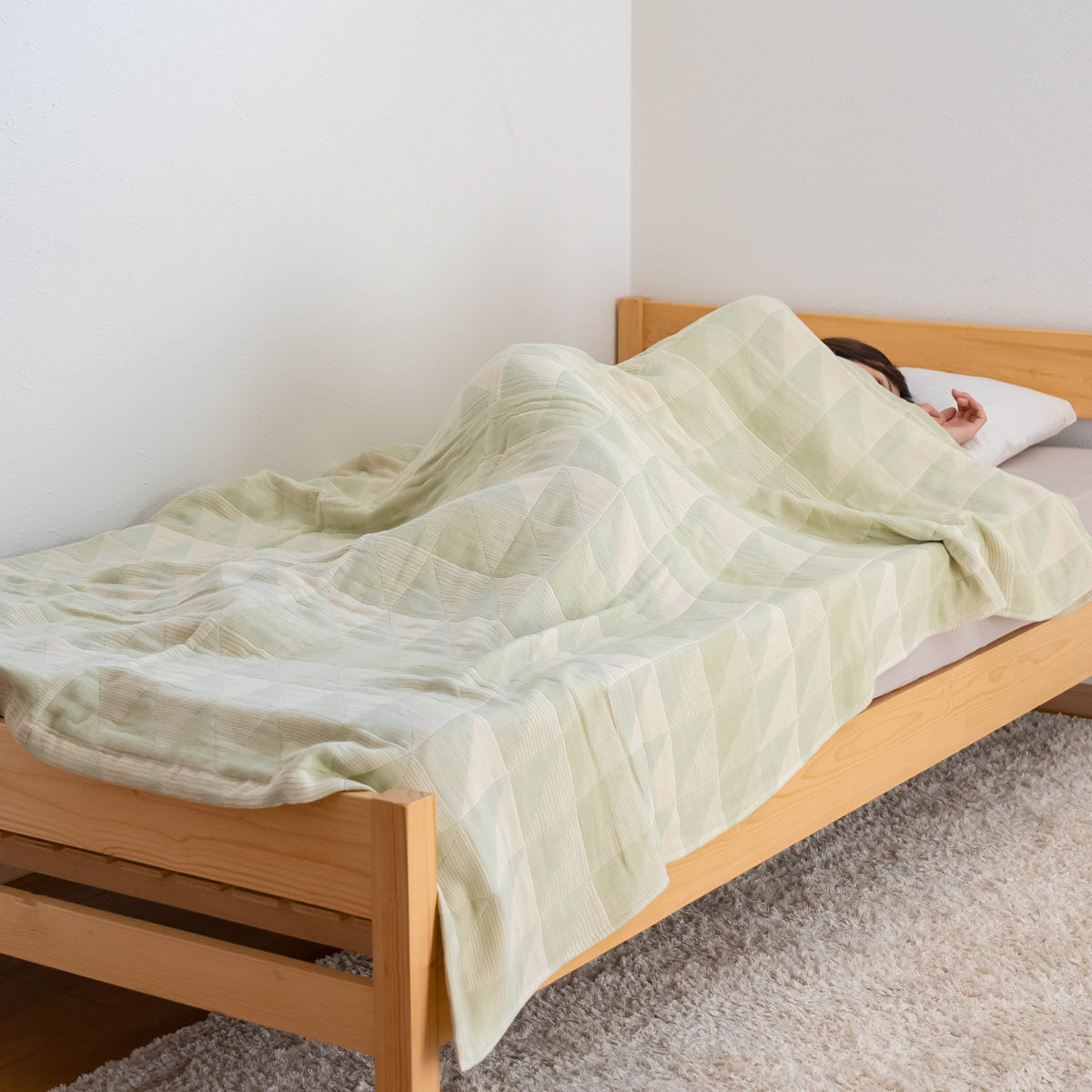 夏は冷房対策、春と秋には1枚で、冬には掛け布団と合わせてインナーケットとしてや毛布代わりにもお使いいただけます。