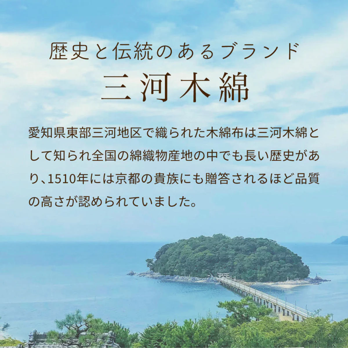 三河木綿を使用し、柔らかくさらっとした肌ざわりのガーゼケットです。やわらかなガーゼを6層に重ねることでふっくらボリュームをもたせました。