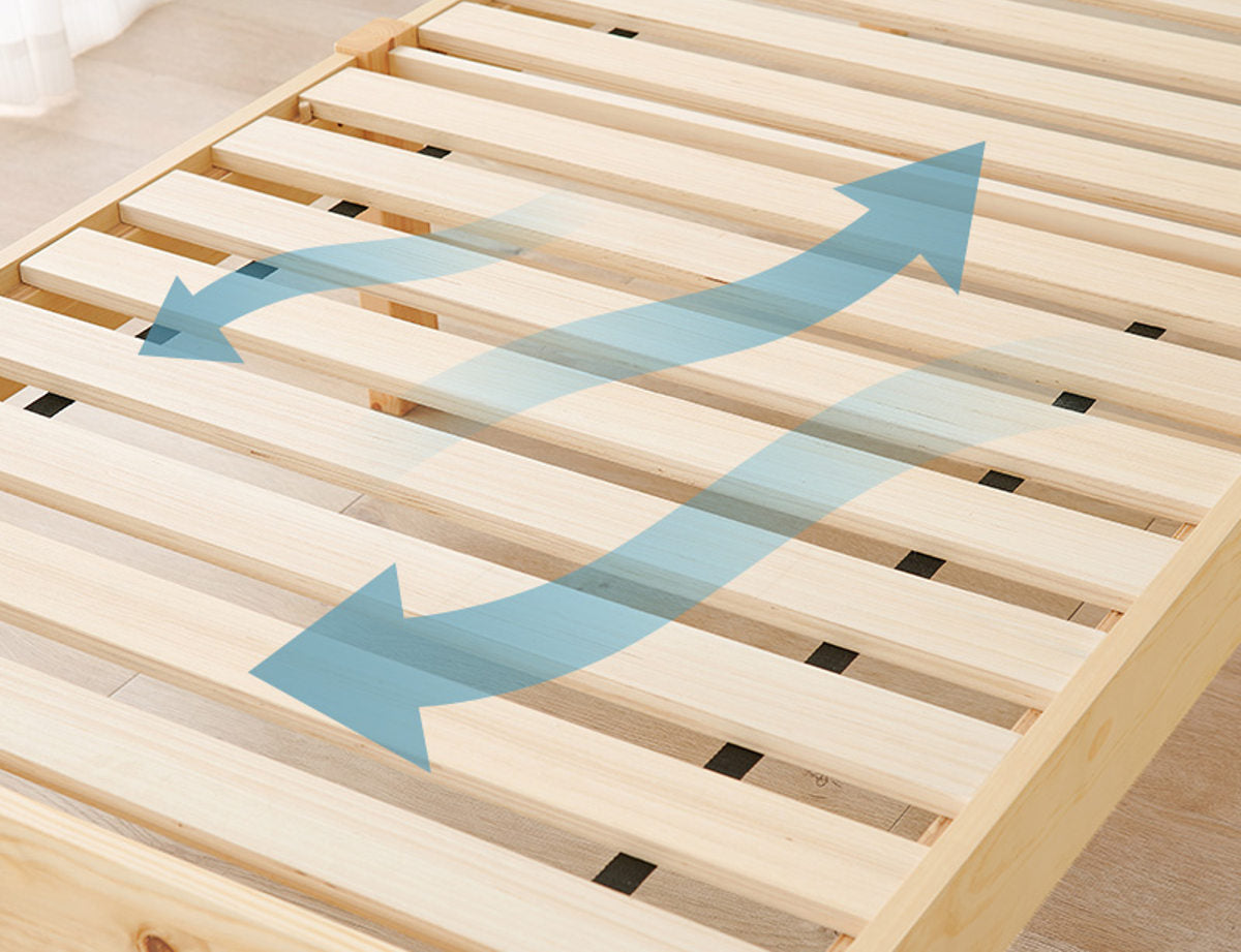 厚みのあるすのこやしっかりと太さのある柱を使用し、高耐荷重で丈夫な作りなので毎日安心してお使いいただけます。