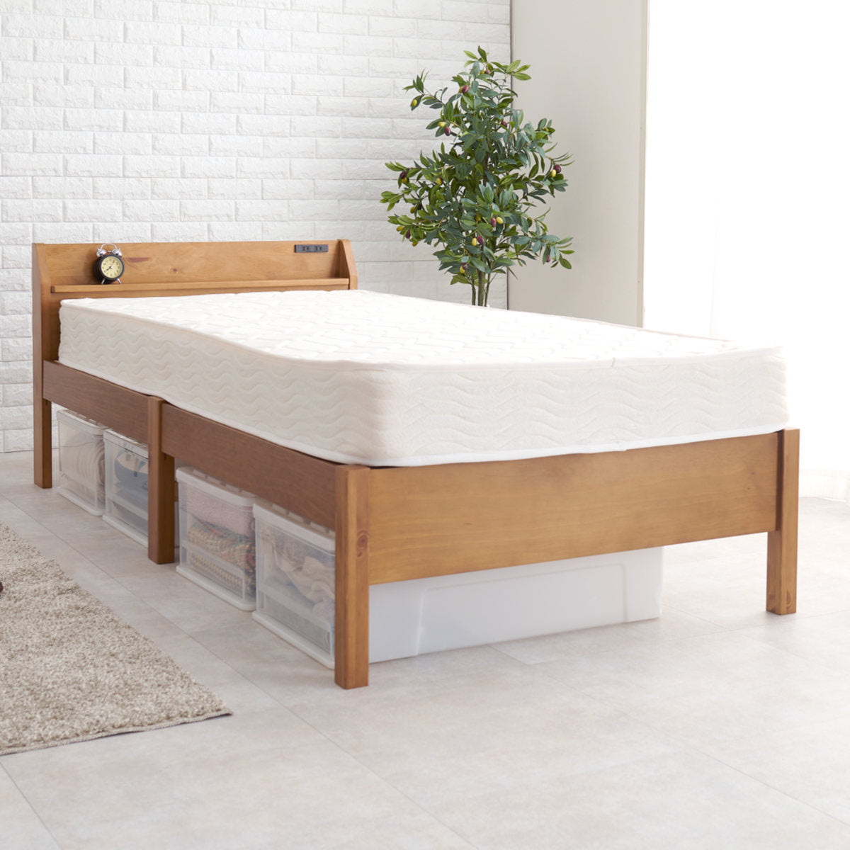 3分組立ベッド シングル ボンネルコイルマットレスセット ベッドボード 2口コンセント付 工具不要