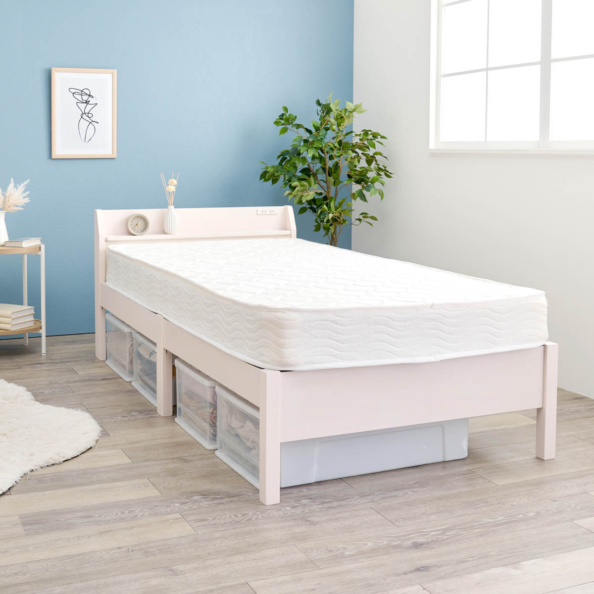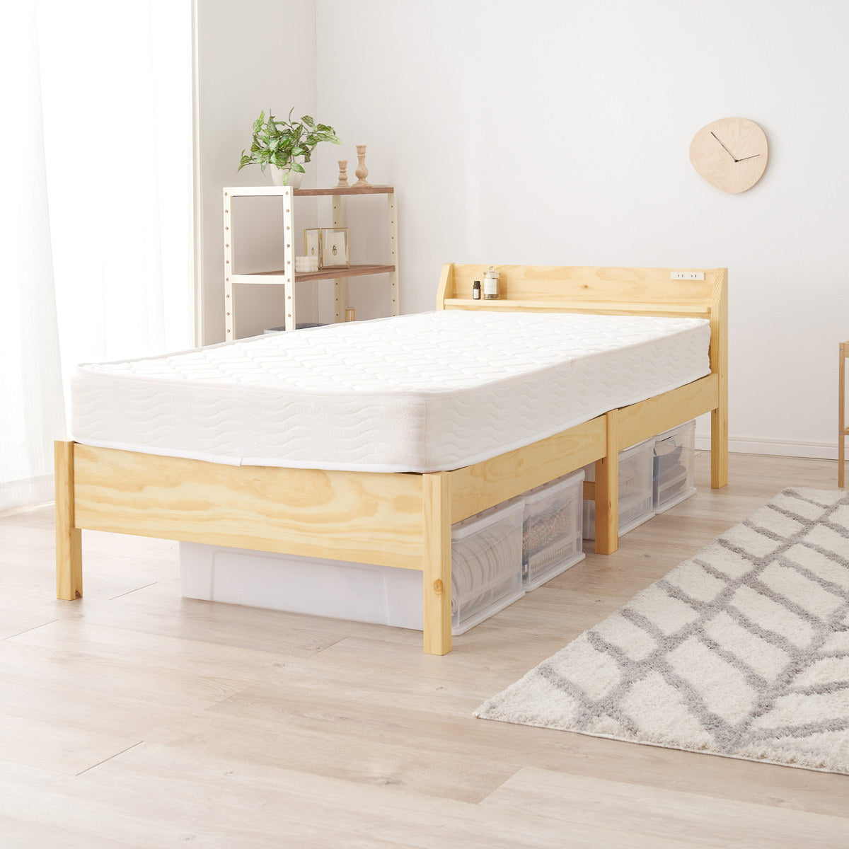 3分組立ベッド シングル ポケットコイルマットレスセット ベッドボード 2口コンセント付 工具不要