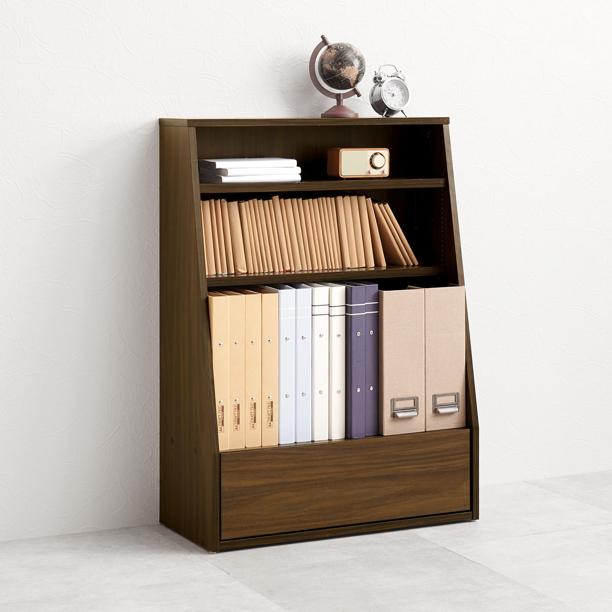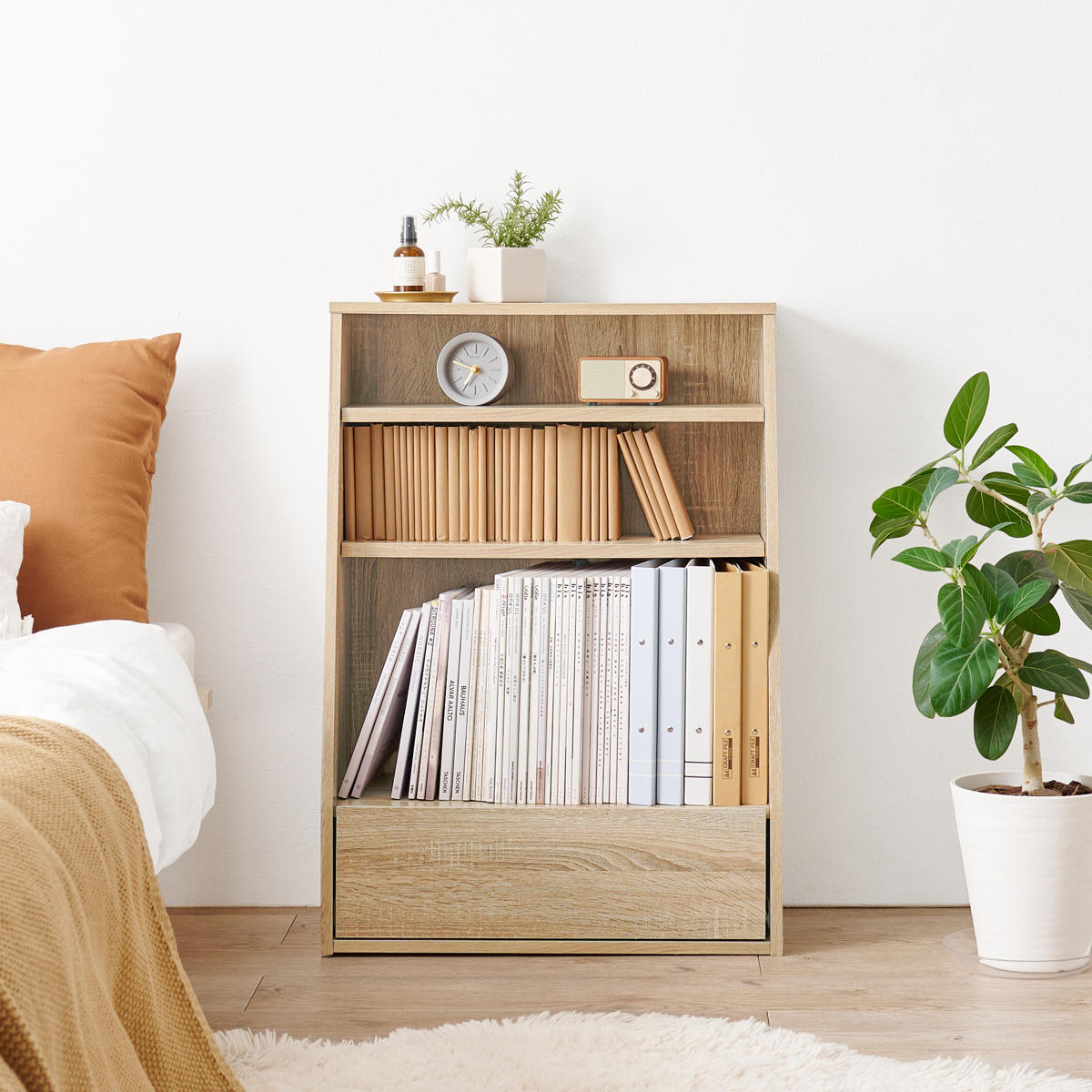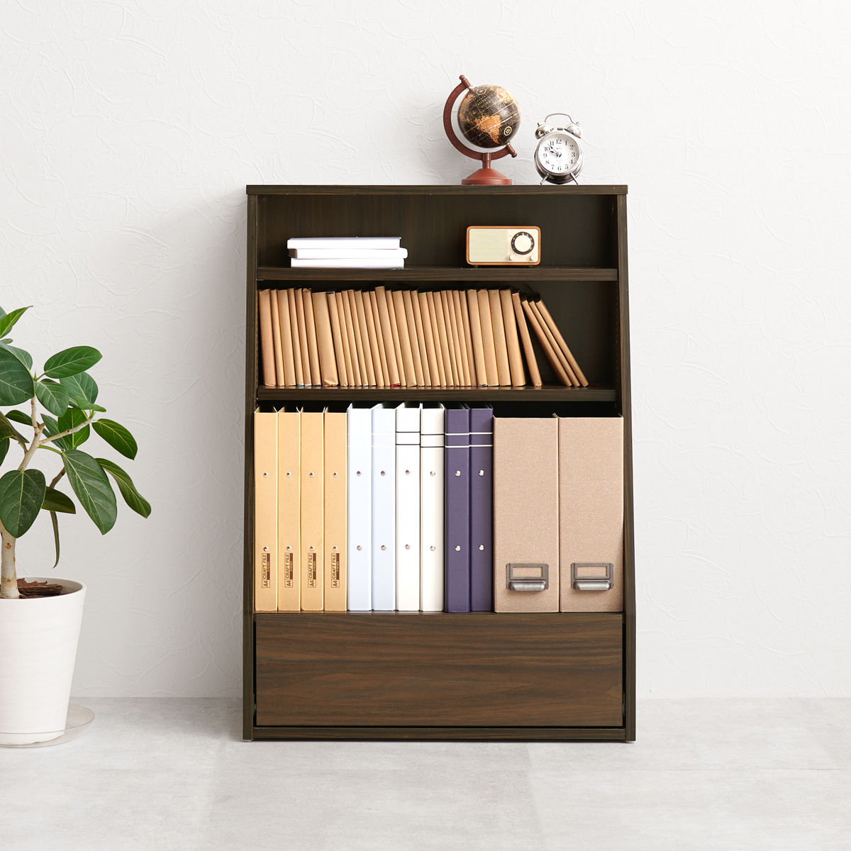 1cmピッチ可動 本棚 幅60cm ロータイプ 可動棚2枚 引出し付