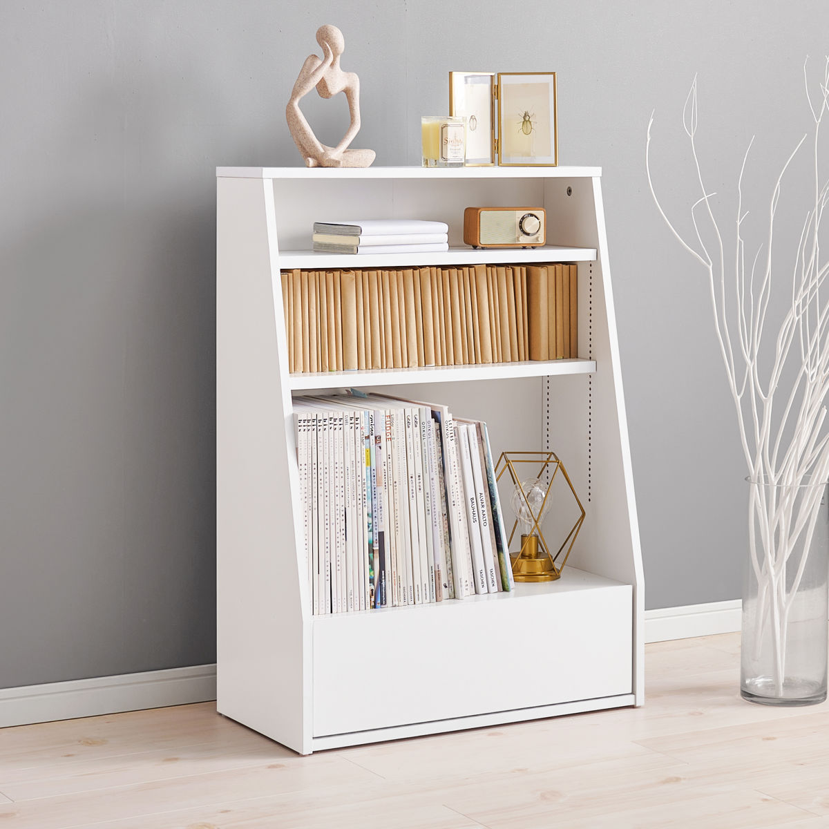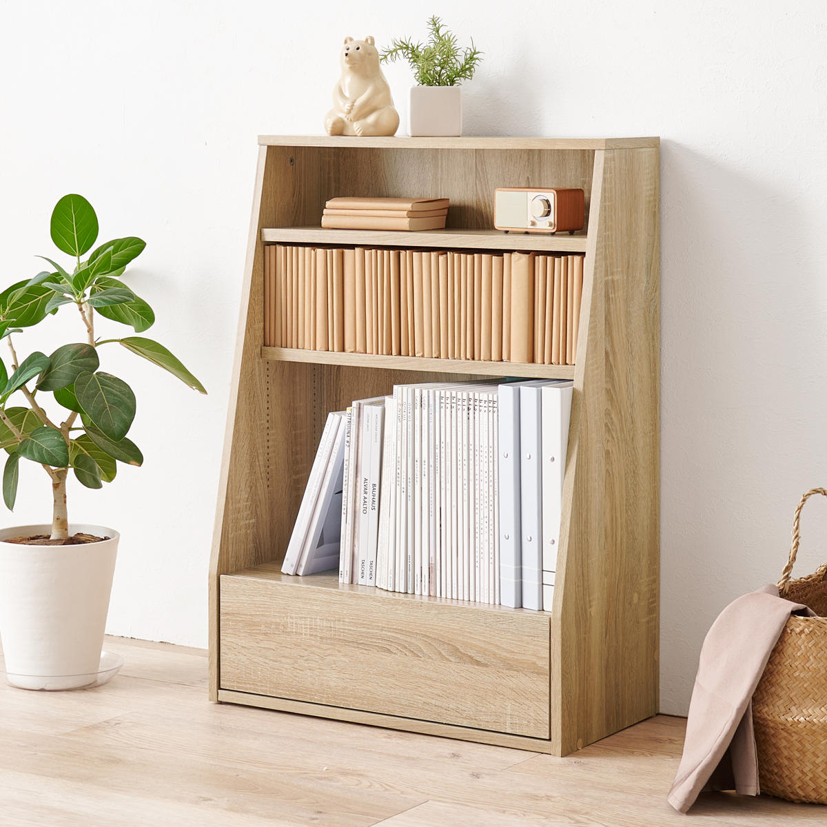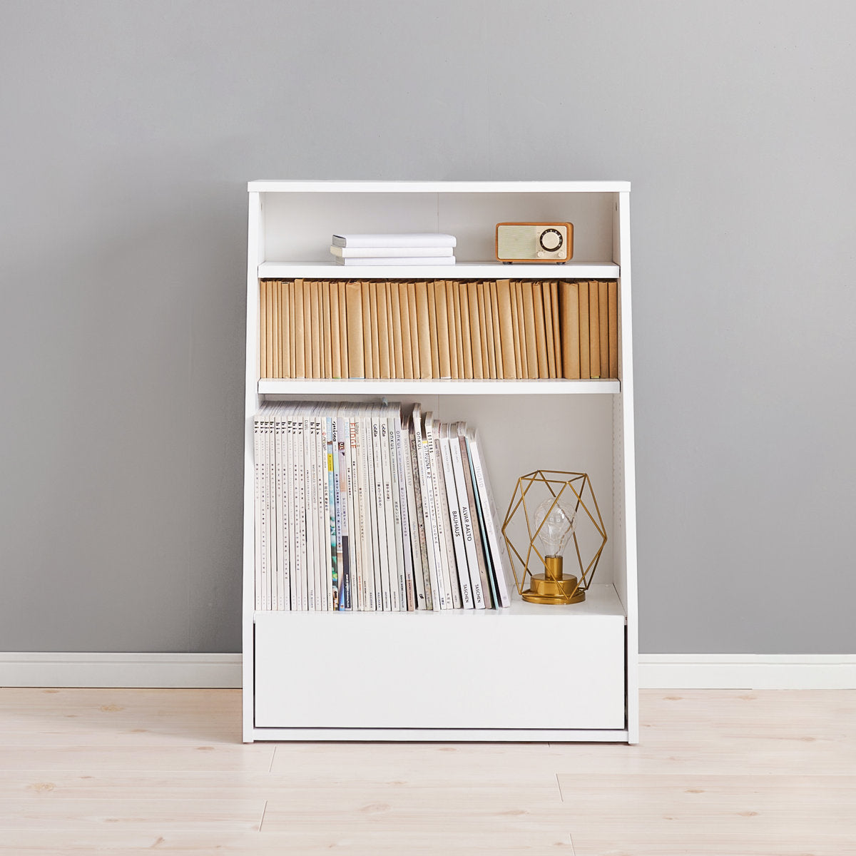 1cmピッチ可動 本棚 幅60cm ロータイプ 可動棚2枚 引出し付