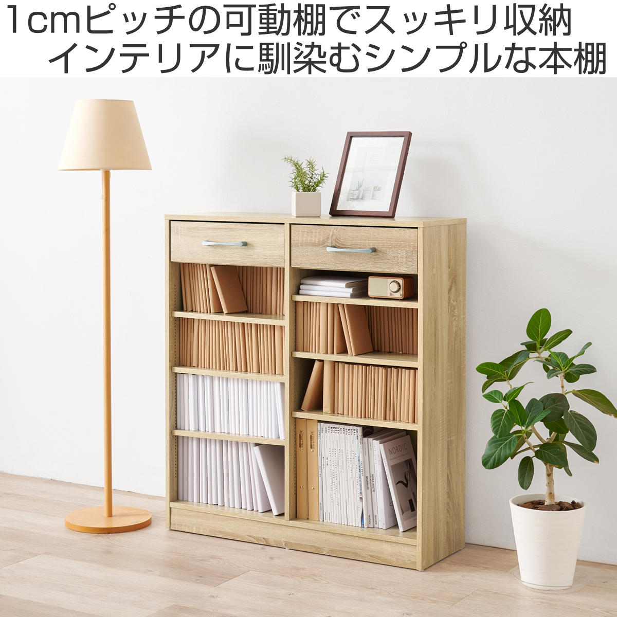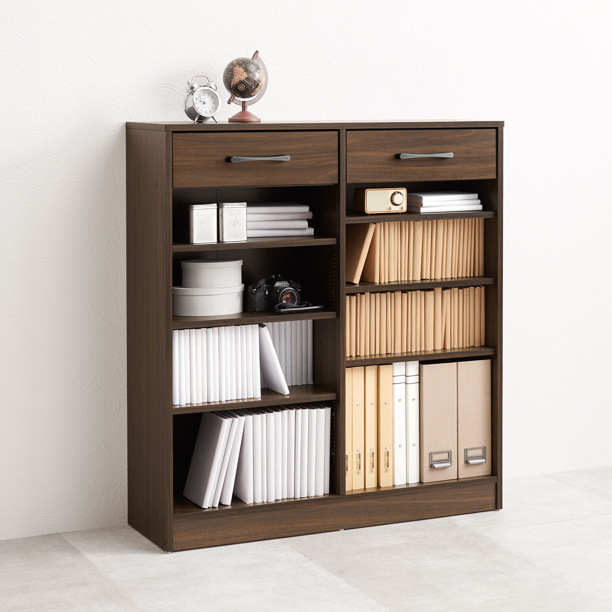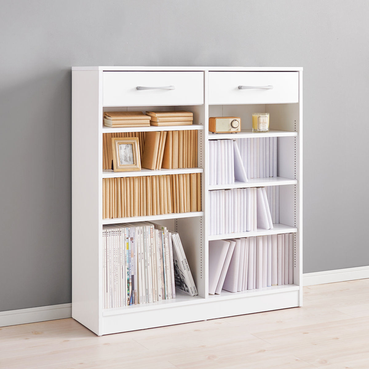 1cmピッチ可動 本棚 幅90cm 可動棚6枚 引出し付