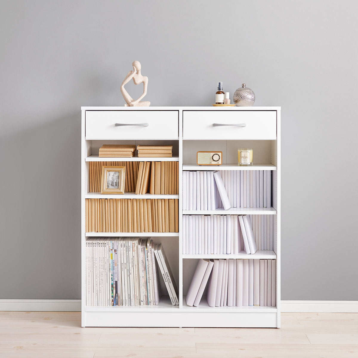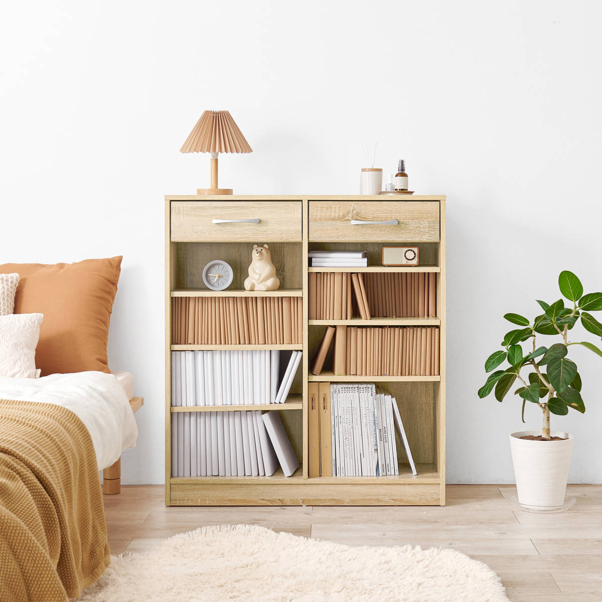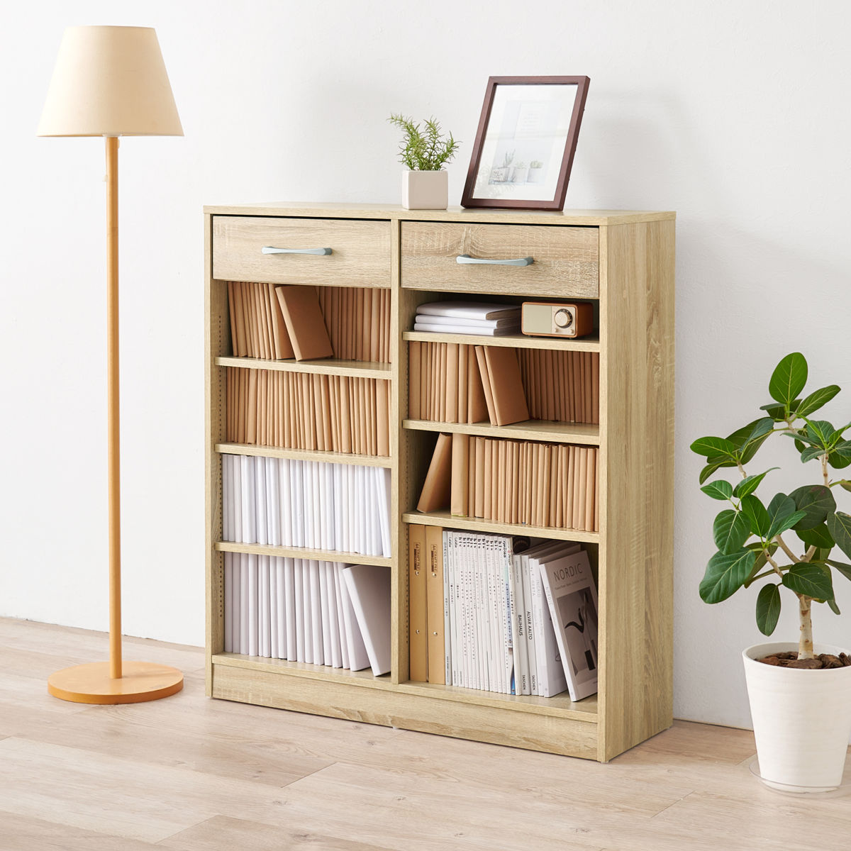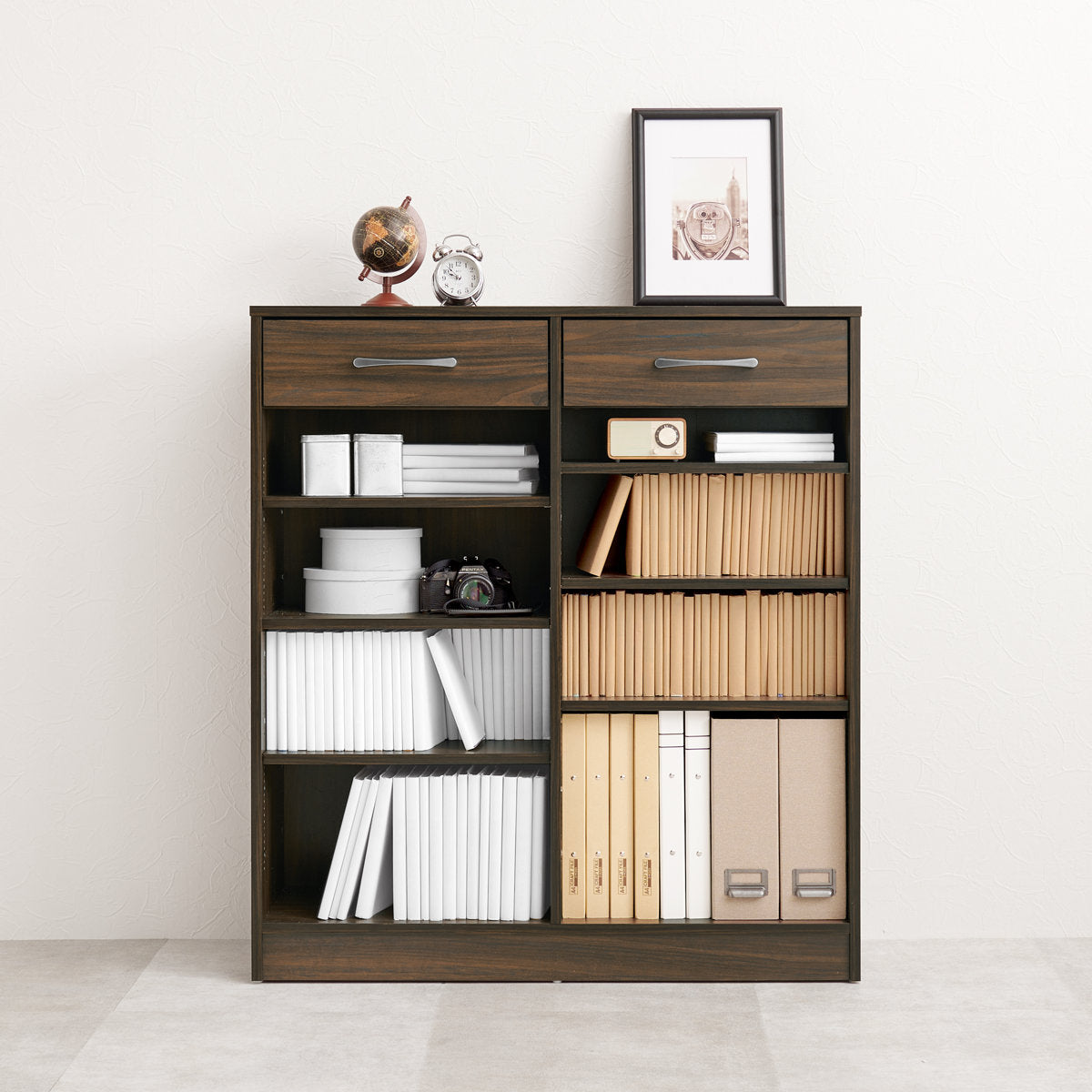 1cmピッチ可動 本棚 幅90cm 可動棚6枚 引出し付