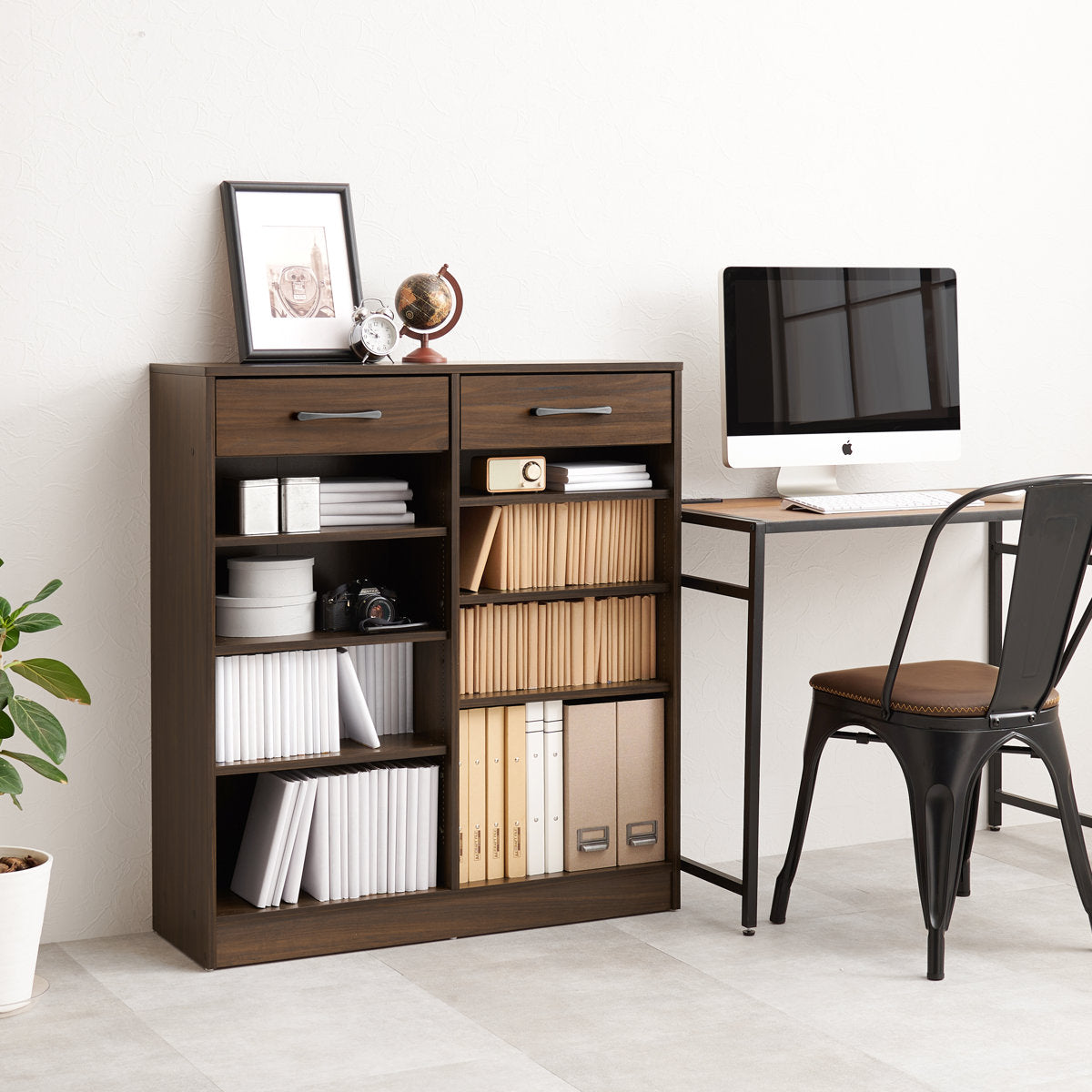 書斎などの仕事部屋やデスク横の収納にもおすすめです。引出し付きなので文房具なども収納できます。