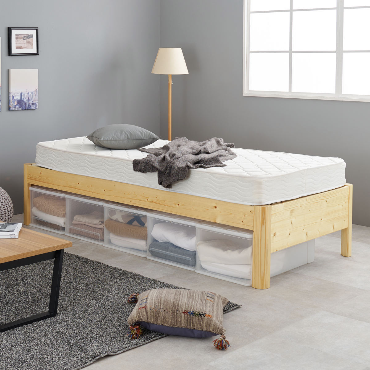 3分組立ベッド ボンネルコイルマットレスセット シングル ステージタイプ 高耐荷重 天然木