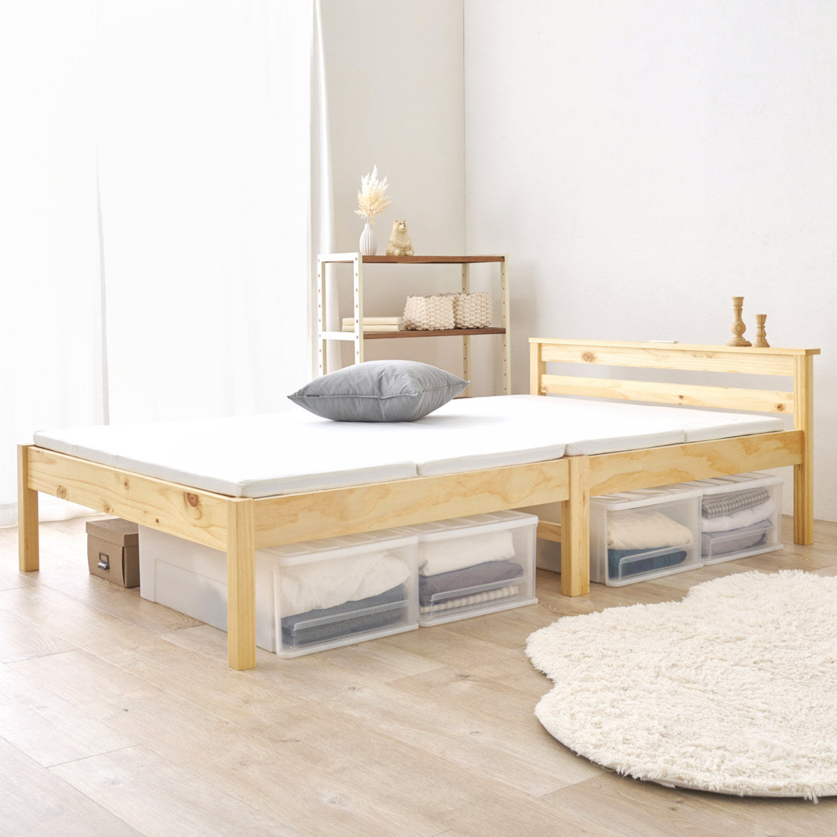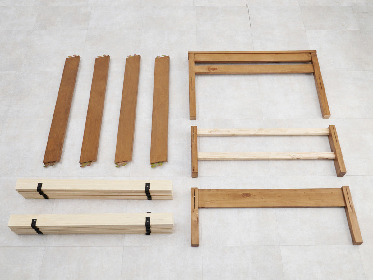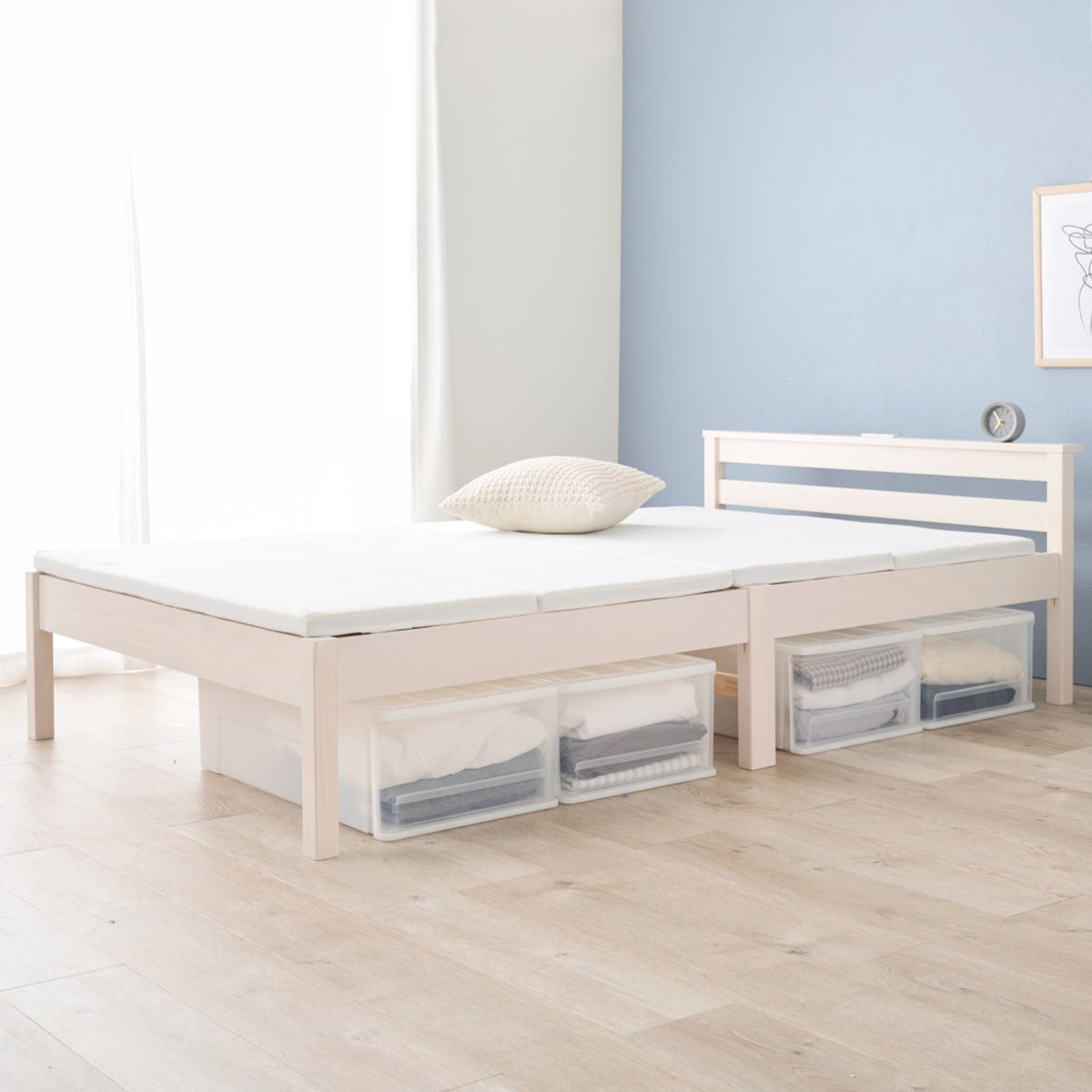 わずか3分で簡単に組み立てることができるすのこベッドです。ネジや工具が不要なのでパーツを差し込むだけで組み立てが完了します。通気性の良いすのこで汗や湿気を溜め込まず、年中快適にお過ごしいただけます。また、天然木ならではの優しい木目と風合いで心地の良い眠りを誘います。
