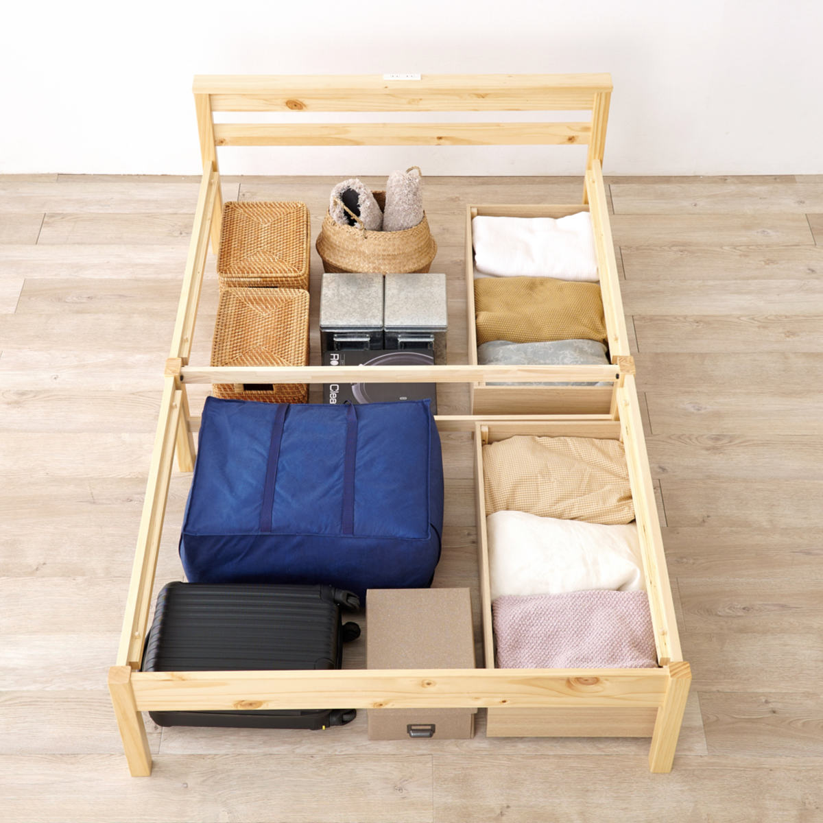 ベッド下のスペースには季節物や使用頻度が低い物を収納することができます。かさばるものを収納できるので、ゆとりのある空間が生まれます。