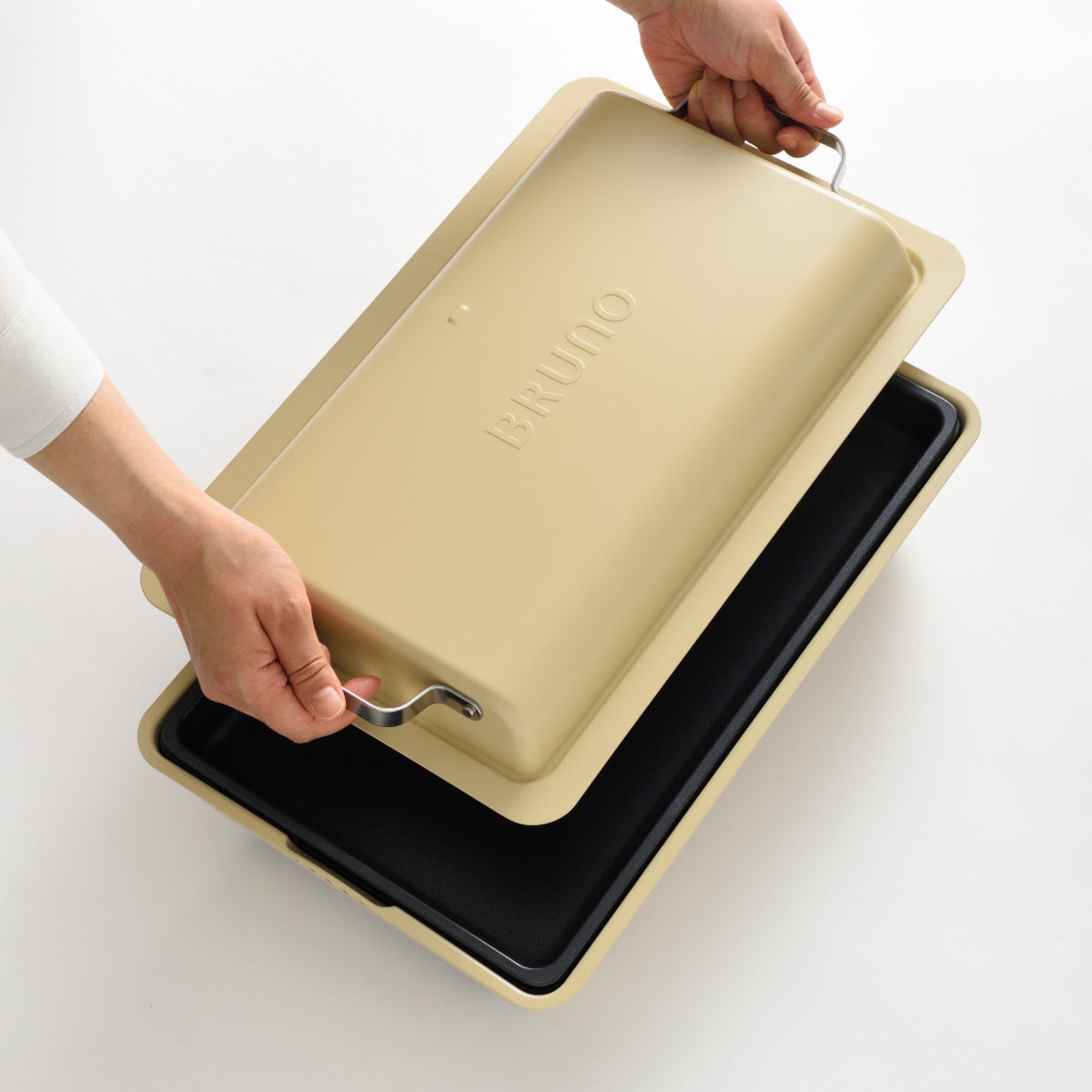 深めのプレートは具材がこぼれにくく、ストレス無く調理ができます。蓋をした状態での庫内は75mmの高さがあるので、炒める・焼くはもちろん、器を使った料理や煮物、蒸し物など幅広い料理が楽しめます。