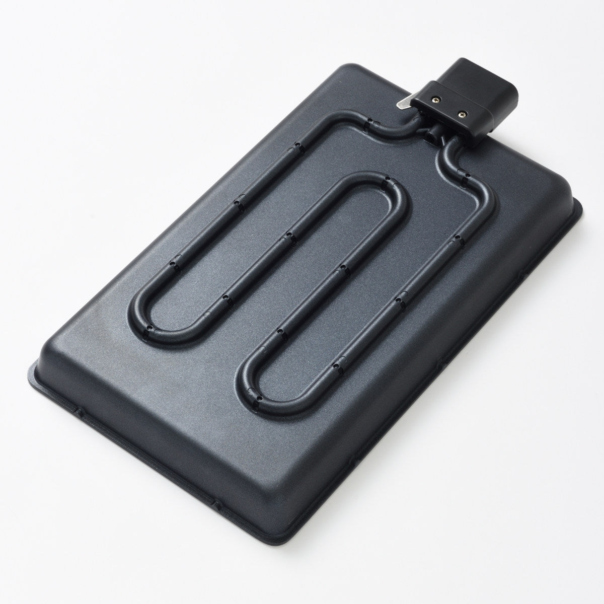 プレート内部には、熱が端までしっかり届くようにヒーター線が配置されています。食材を乗せても温度が下がりにくく、高火力で均一に加熱できます。