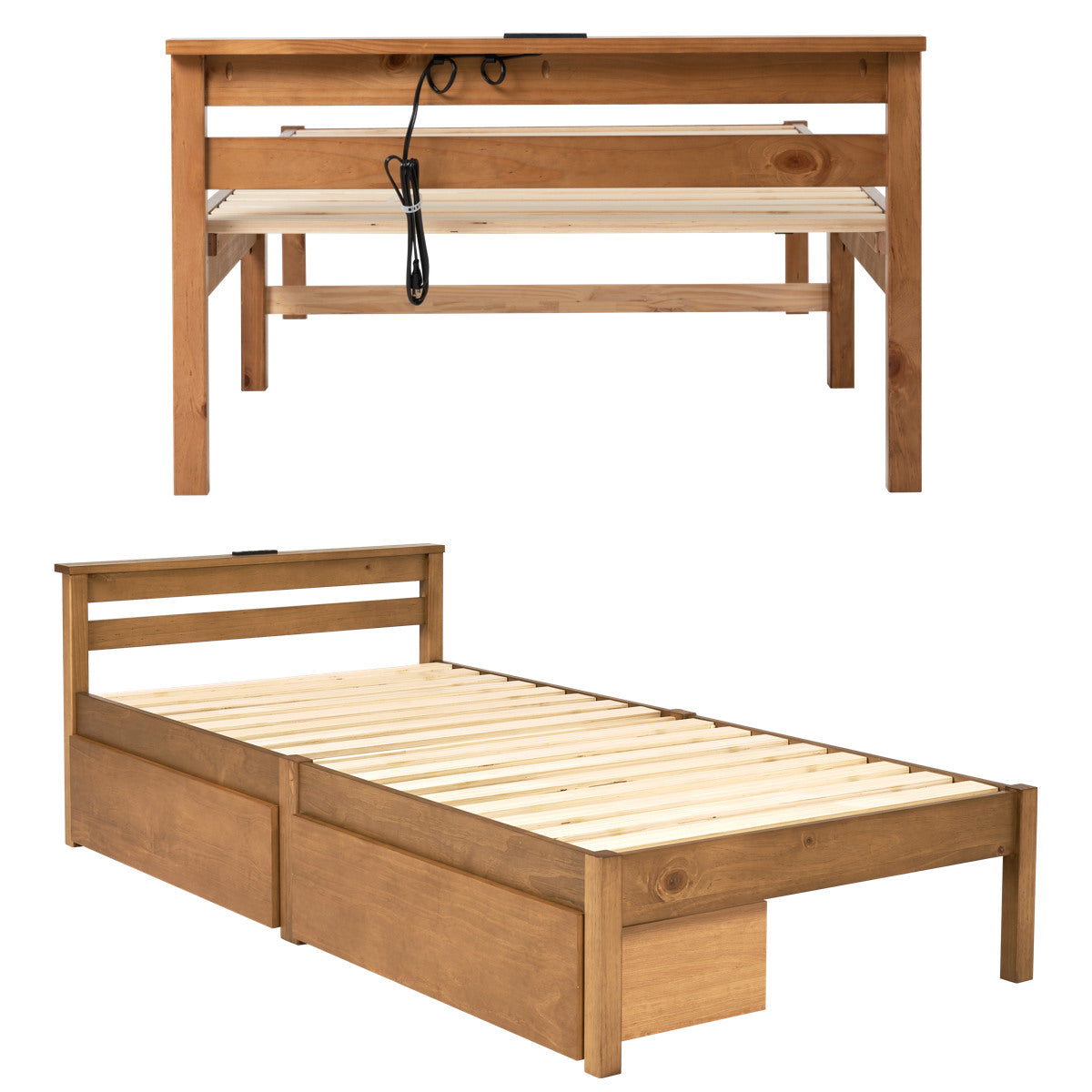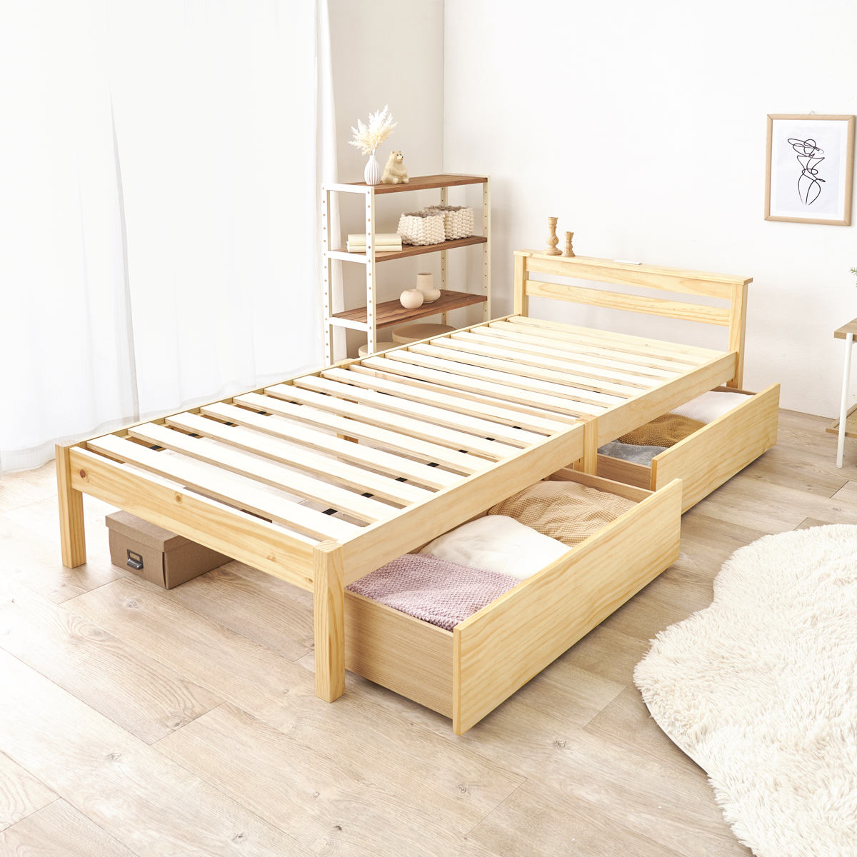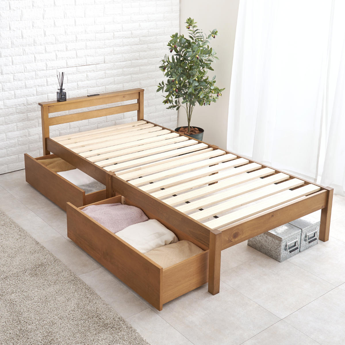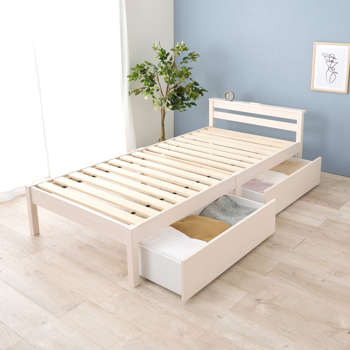 3分組立ベッド シングル 引出し収納 宮棚 2口コンセント