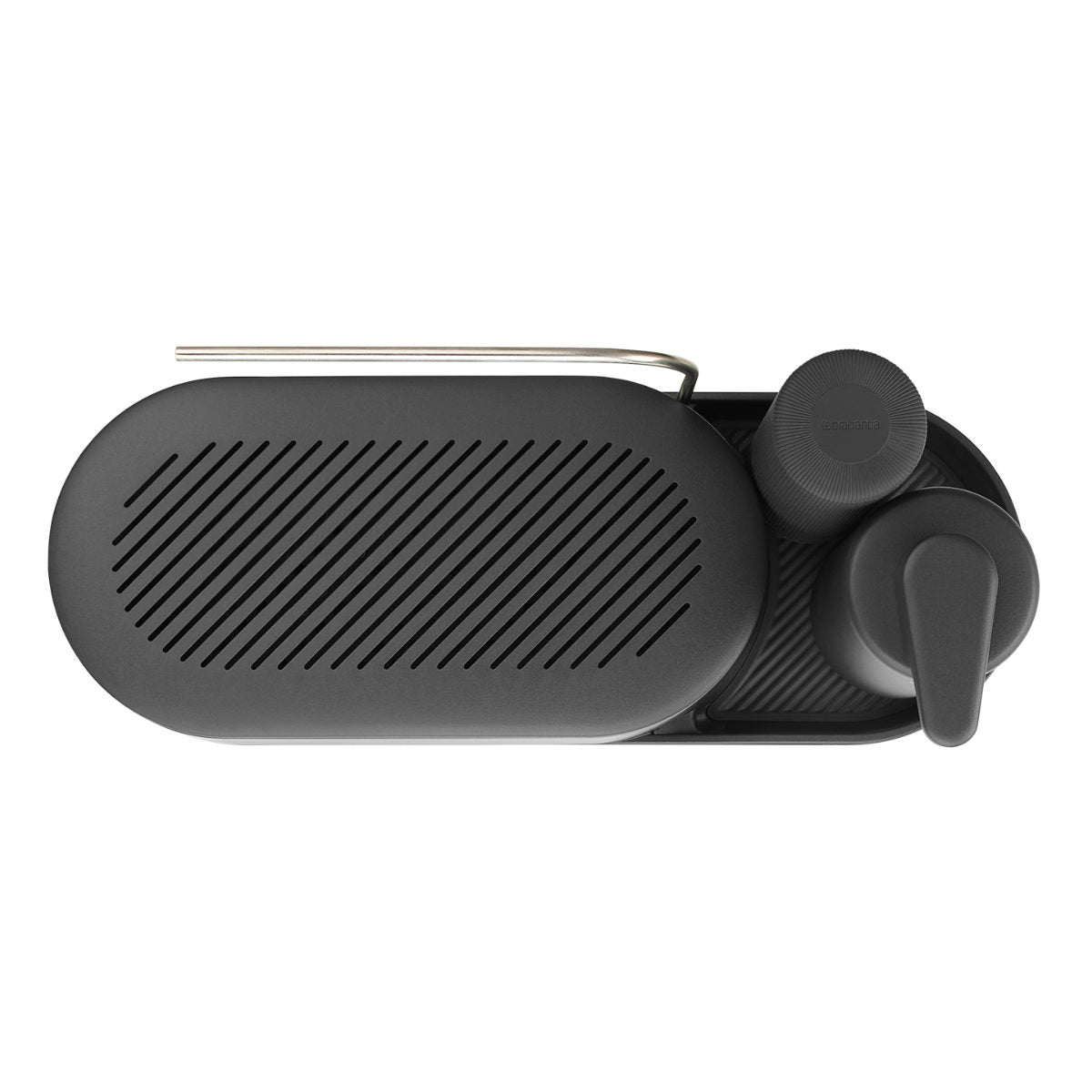 ハンドソープなどを入れるソープディスペンサーと、食器用洗剤を入れるソープスクイージーをすっきりまとめられます。ソープスクイージーの容量は200mlで大きい補充口があるので、詰め替えが簡単です。ソープスクイージーは側面を握るだけで洗剤が出ます。表面は滑りにくいので、濡れた手でも使えます。液だれしない構造なのも嬉しいポイントです。収納部分はトレイになっており、シンク周りが濡れません。