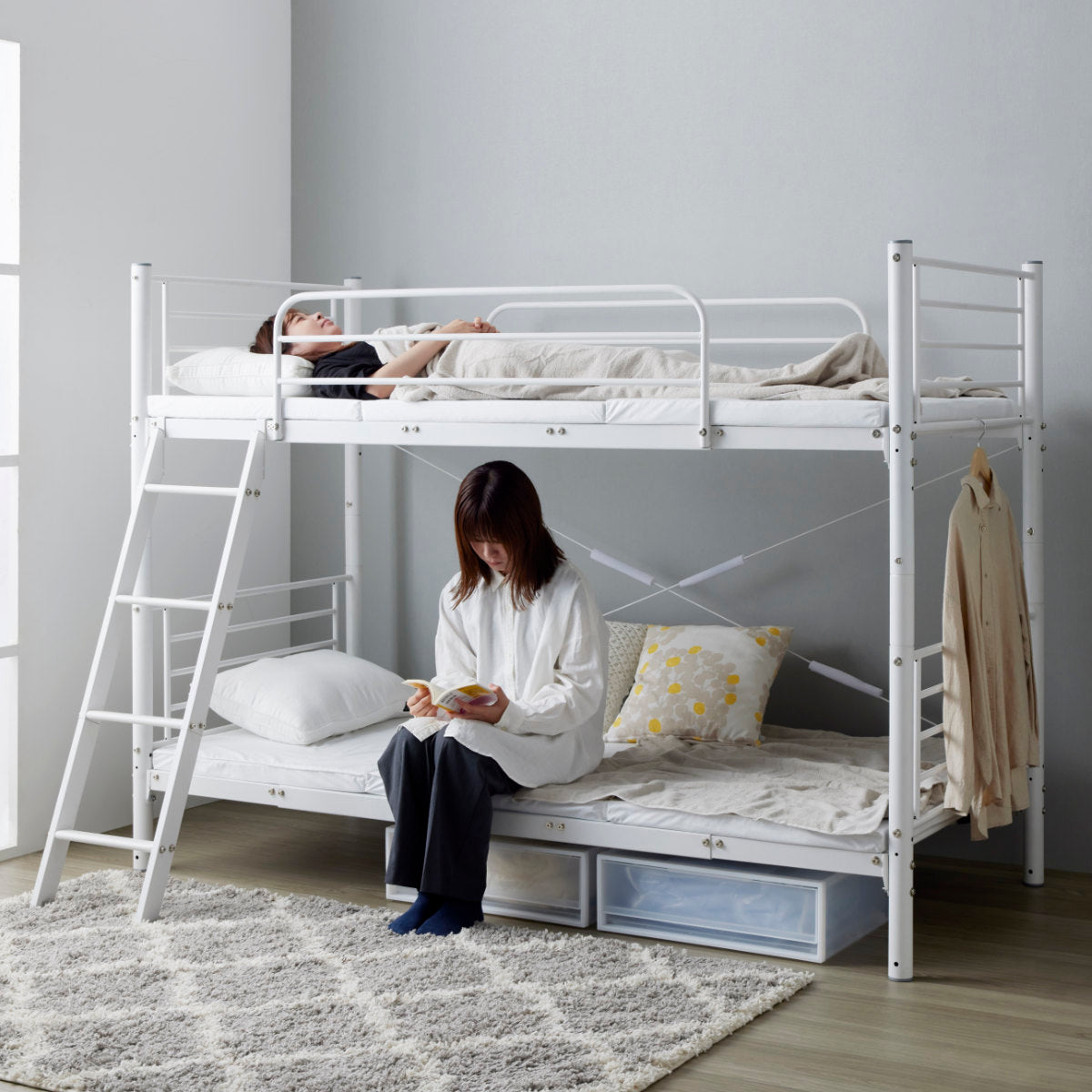 2段ベッド 耐荷重300kg 分離 横連結 シングル&キング対応 スチールフレーム