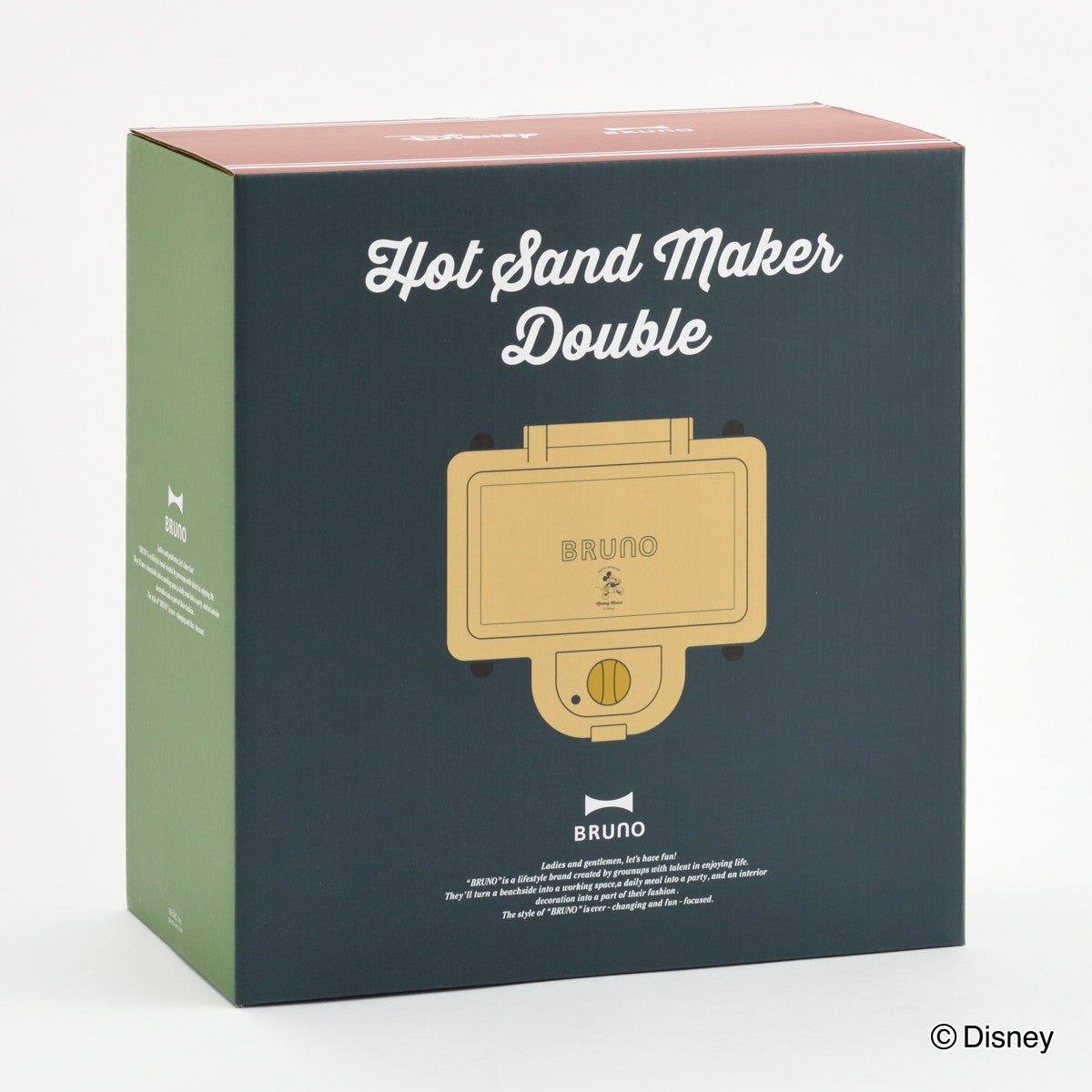 蓋にはBRUNOのロゴとミッキーが描かれています。落ち着いたベージュカラーはおしゃれなインテリアにもなじみやすく、日々の食卓やパーティーに華を添えてくれます。