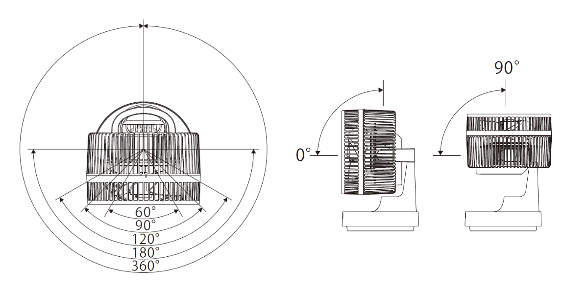 (左右首振り360度、上下首振り90度、風量4)