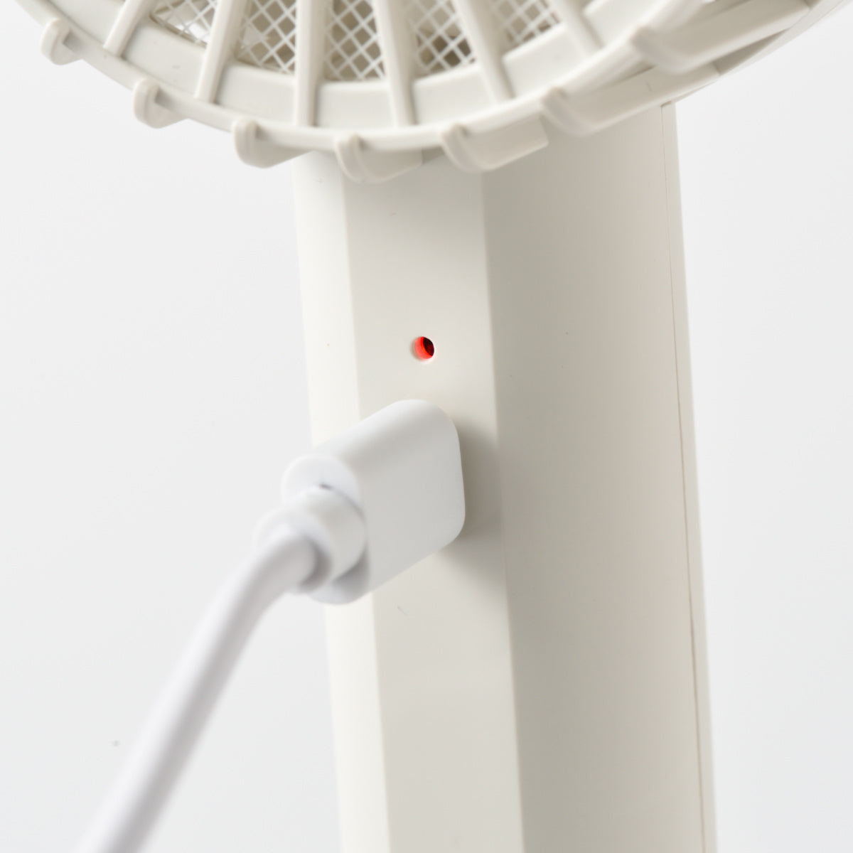 カラビナは後ろに倒すとスタンドになり、卓上ファンとしても活躍します。勉強やデスクワーク、ちょっとした作業時にもおすすめです。