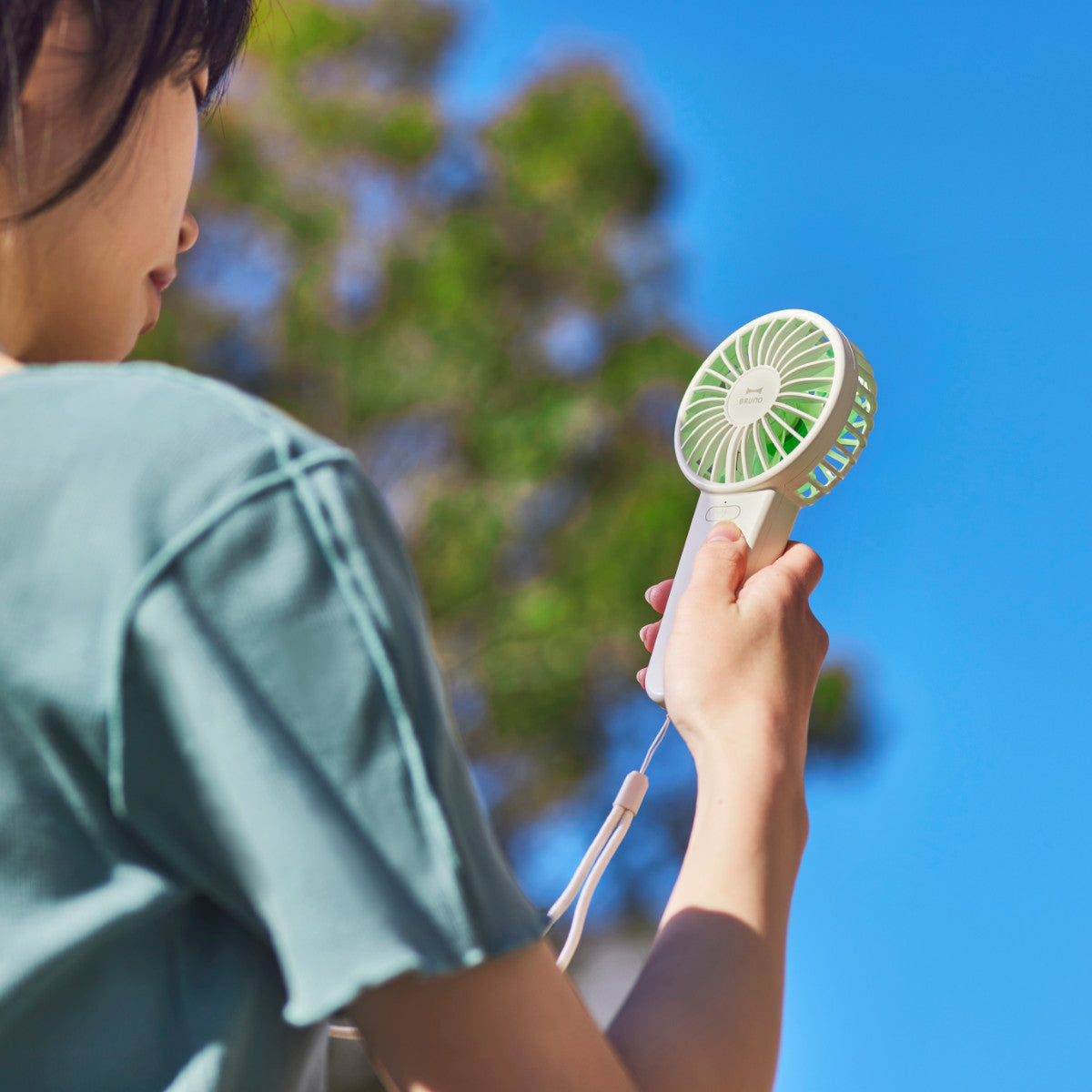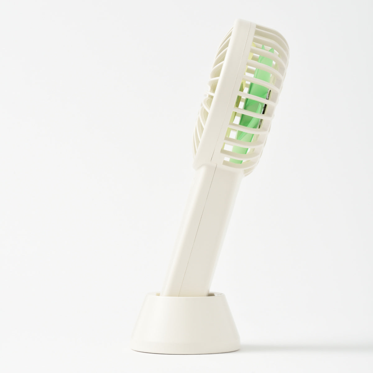 カラーの違う2枚の羽が花びらのように見えるハンディファンです。羽のデザインだけでなく、本体のカラーも花をイメージした淡く優しい色味に。見た目の可愛らしさはもちろん、機能性も兼ね備えたファンで、暑い夏も快適に過ごせること間違いなしです。