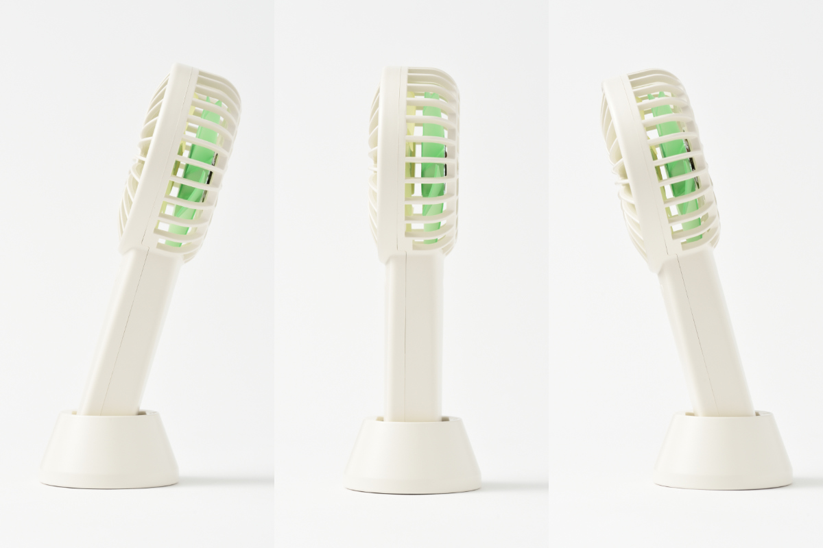 付属のスタンドで自立するので、卓上ファンとしても活躍します。スタンドの向きによってファンの上下の角度を3パターン(16度、0度、-16度)で変えられます。勉強やデスクワーク、ちょっとした作業時にもおすすめです。