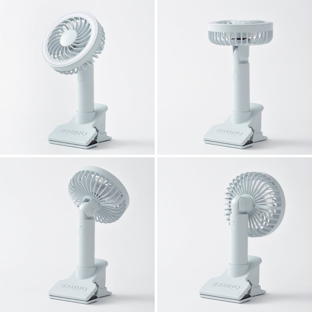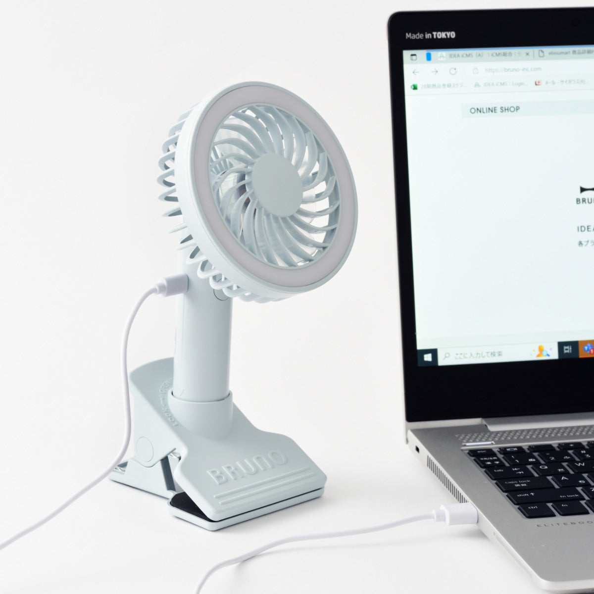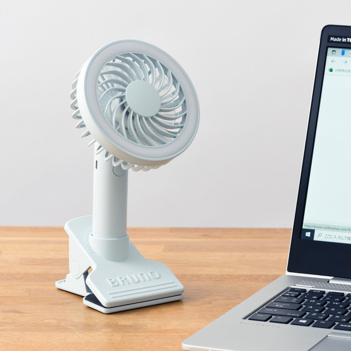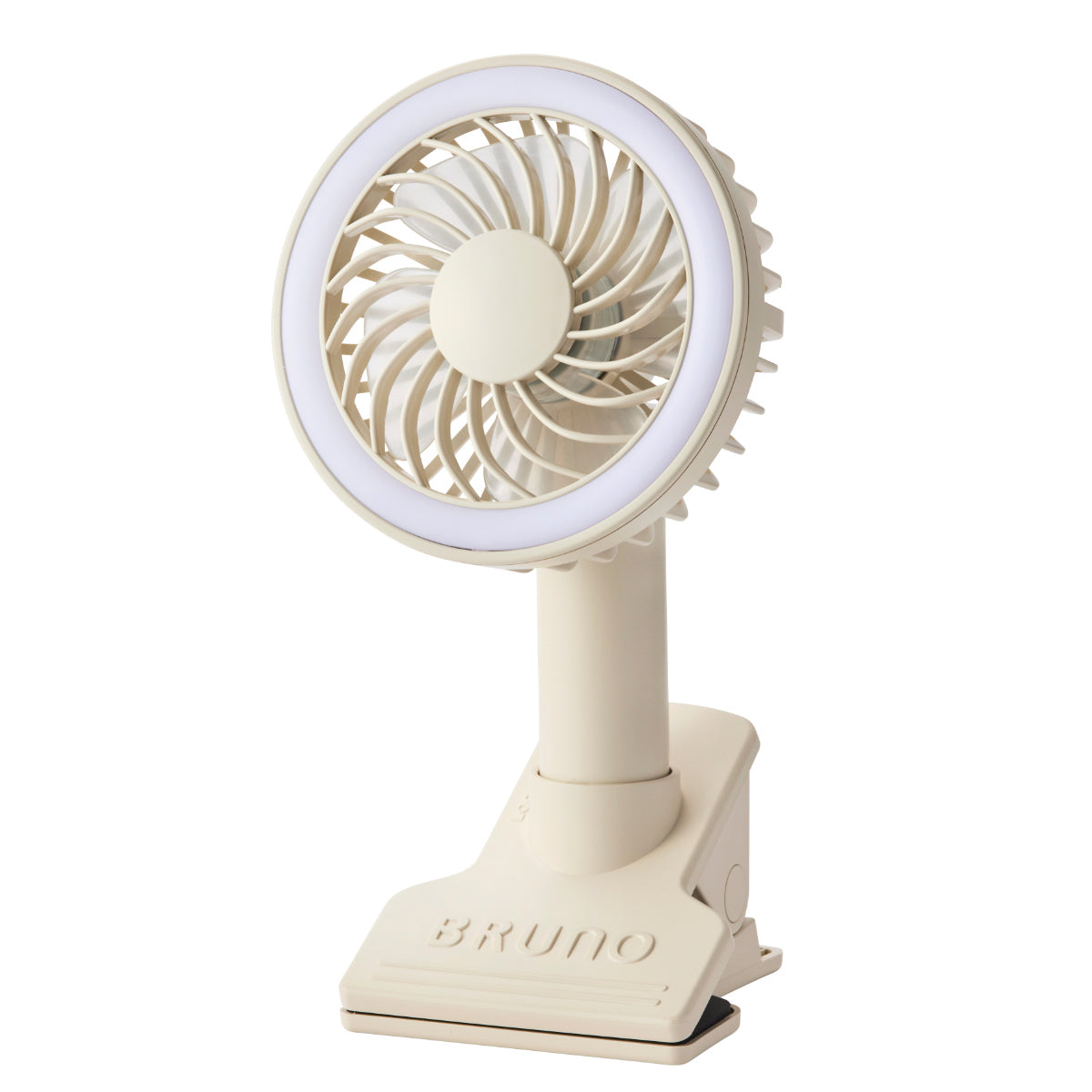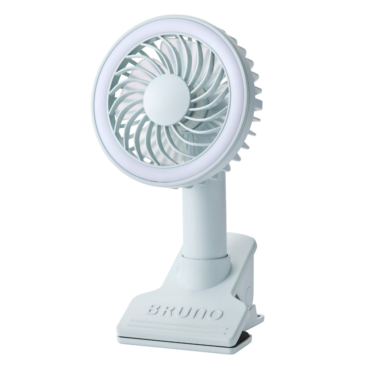 BRUNO デスクファン ライト付き ポータブルクリップライトファン