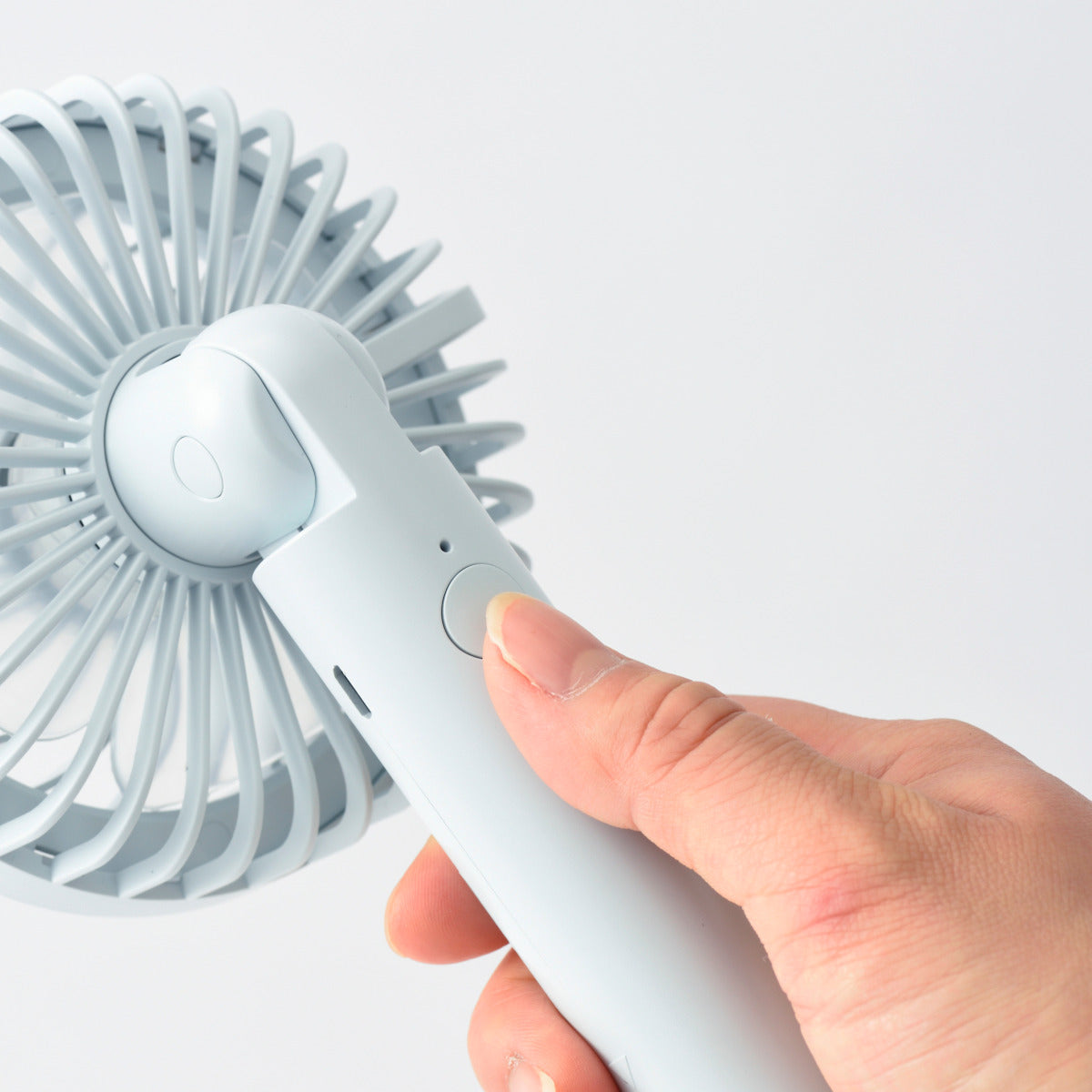 大きなクリップが付いた、挟む・置く・持つの3WAYで使えるミニ扇風機です。ベビーカーや日傘、デスクをクリップで挟んでしっかり固定できるので、暑い日のお出かけやオフィスでの作業など様々な場面で活躍します。もちろんそのまま卓上においてもお使いいただけます。