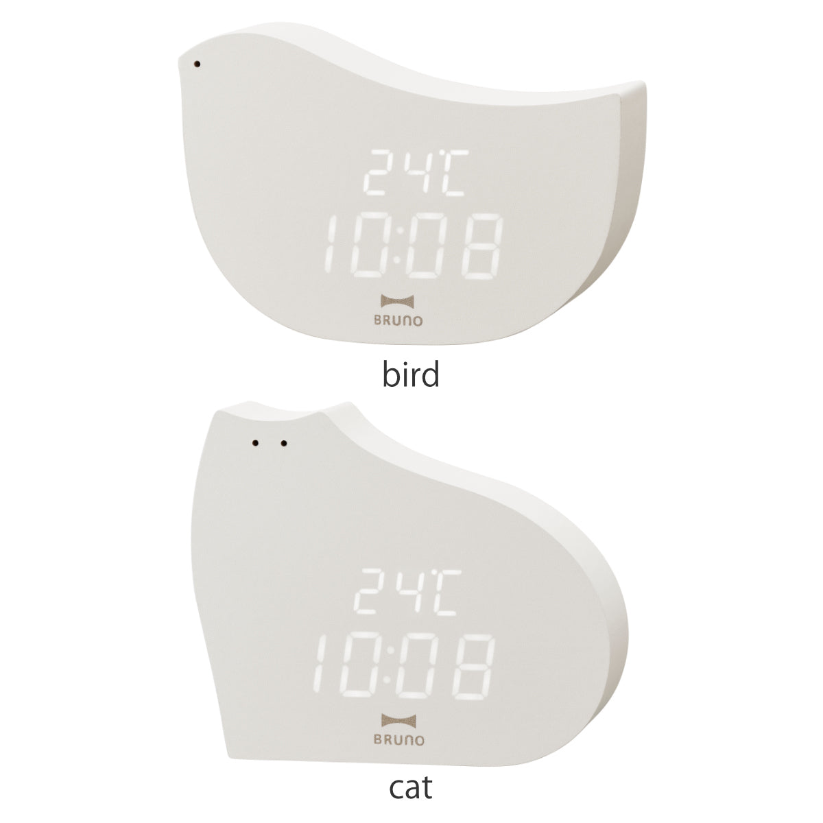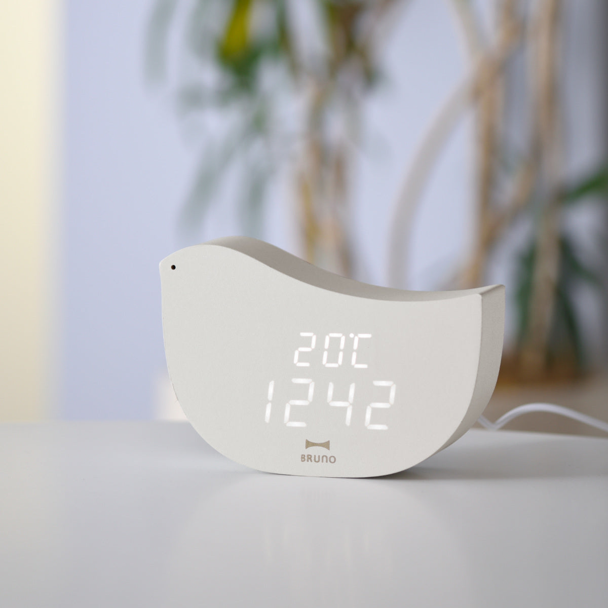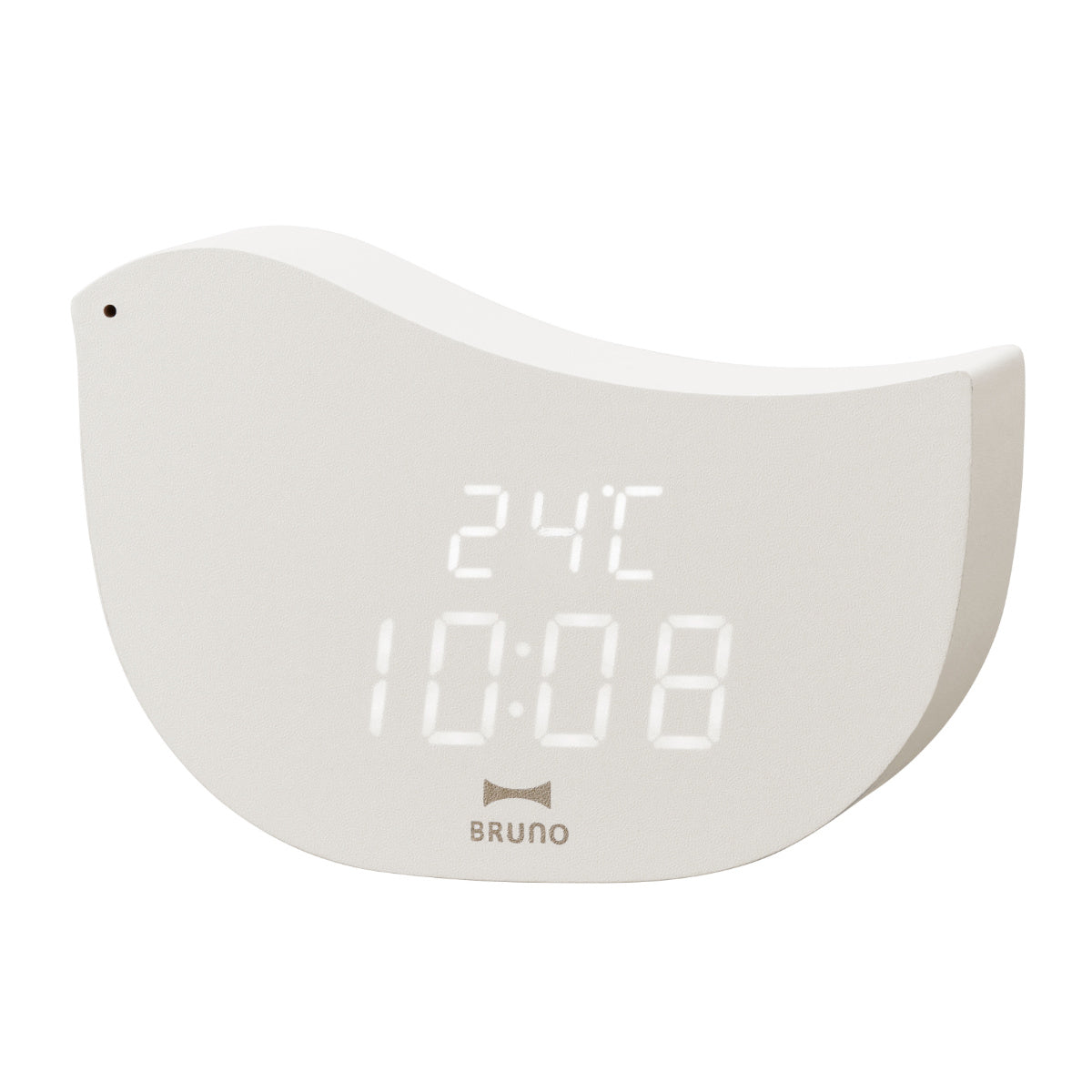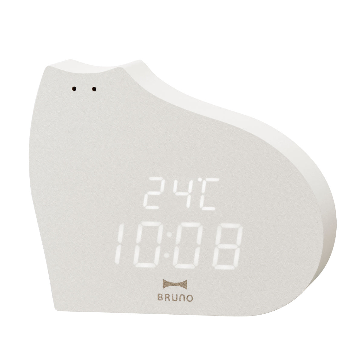 見ると思わずほっこりする、動物をモチーフにしたBRUNOのデジタルクロックです。ホワイトカラーのボディに小さな目が付いたシンプルなデザインは、ナチュラルな雰囲気のお部屋にぴったり。インテリアに溶け込みつつ遊び心を添えてくれます。