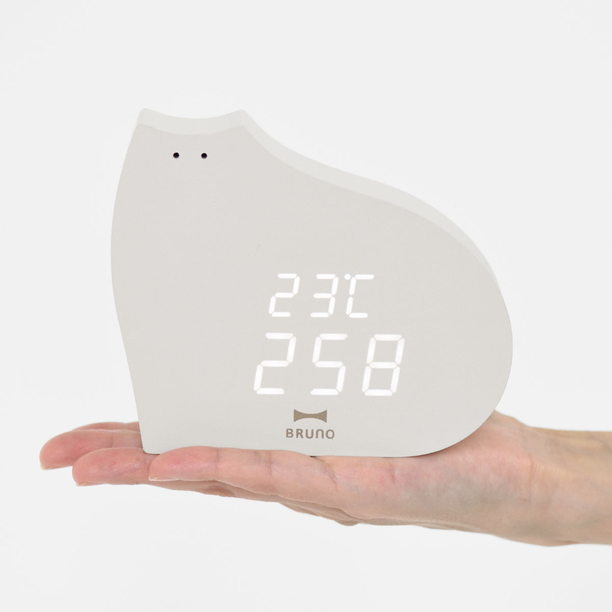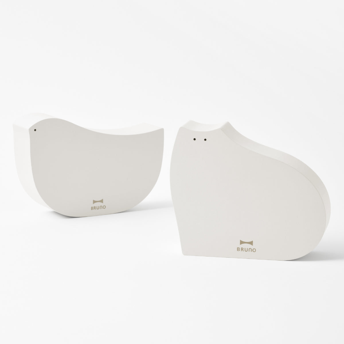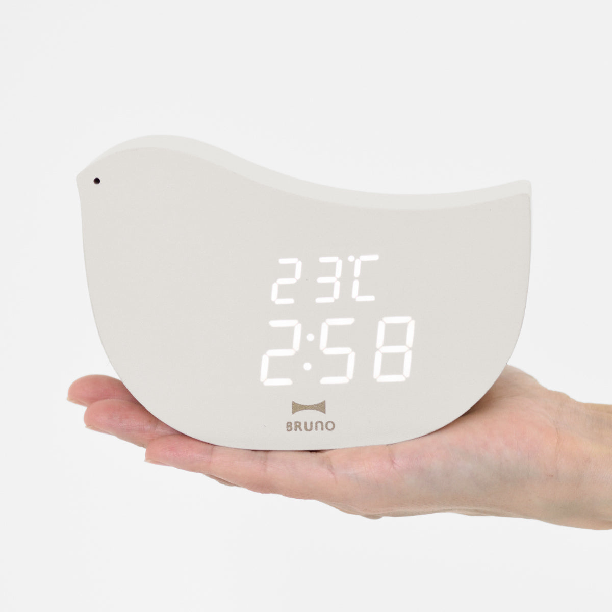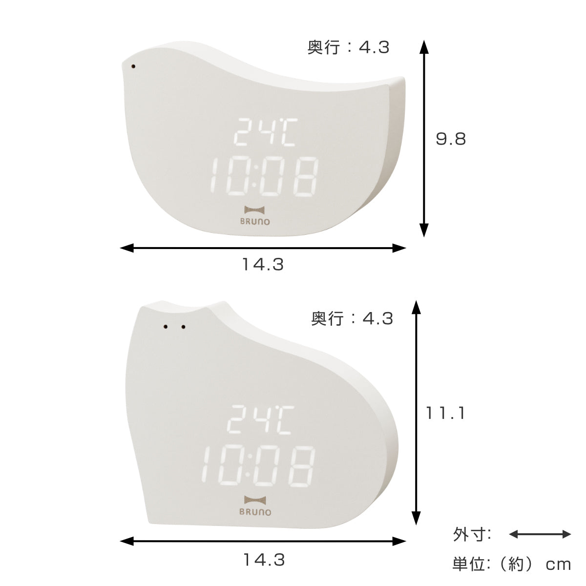 見ると思わずほっこりする、動物をモチーフにしたBRUNOのデジタルクロックです。ホワイトカラーのボディに小さな目が付いたシンプルなデザインは、ナチュラルな雰囲気のお部屋にぴったり。インテリアに溶け込みつつ遊び心を添えてくれます。