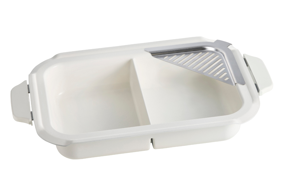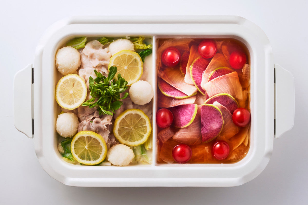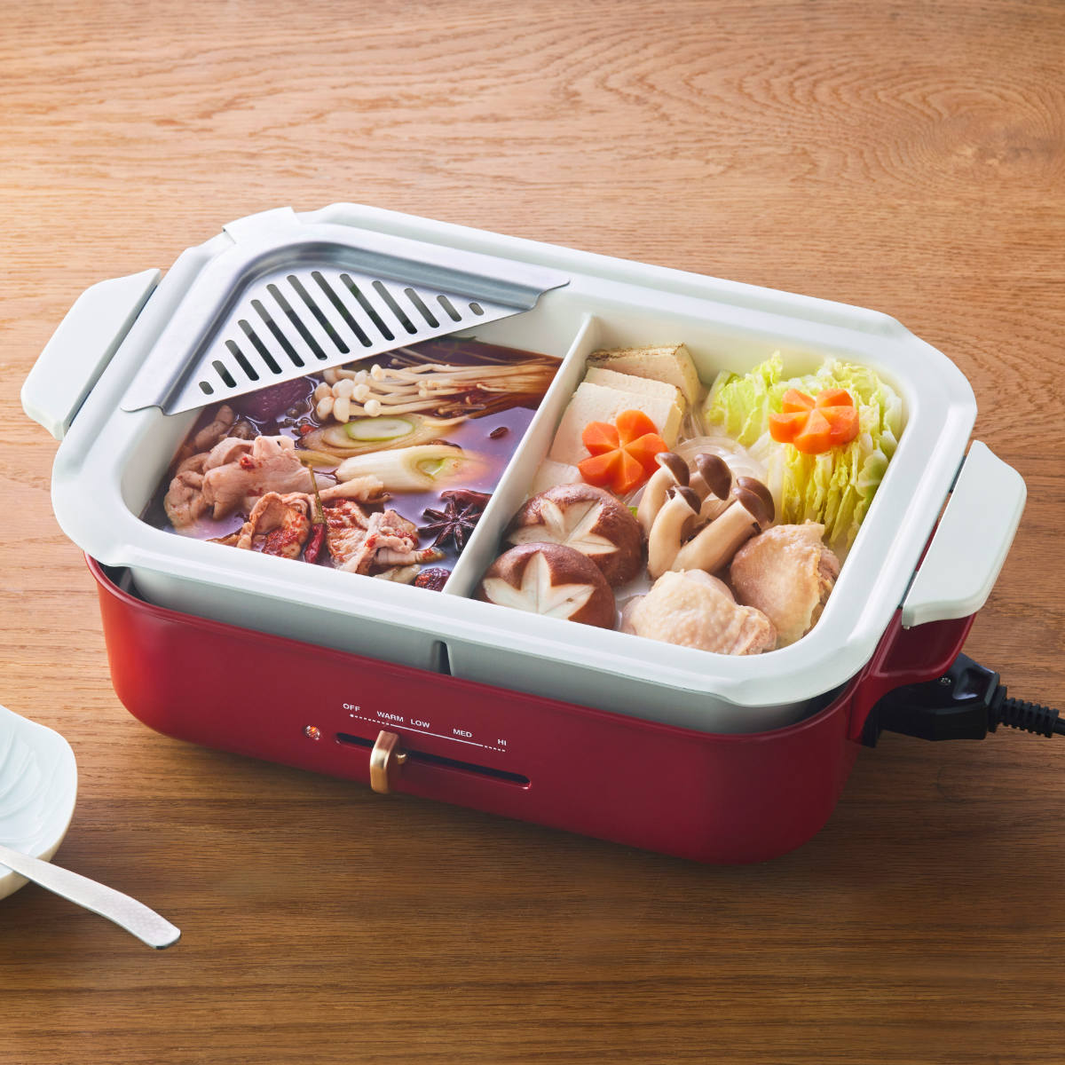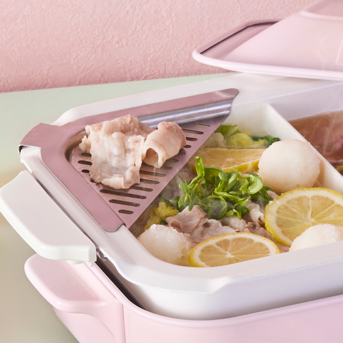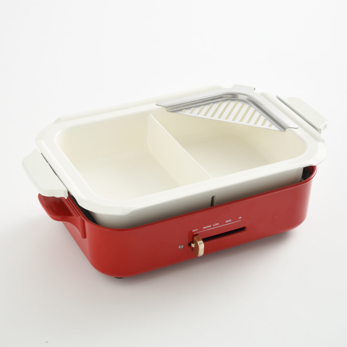 大人気のコンパクトホットプレートで使える専用の仕切り鍋が登場しました。異なる味のスープを同時に調理できるので、辛いのが苦手だったり味の好みが違っても友達や家族みんなで一緒にお鍋を囲めます。もちろん1人で色んな味を堪能したい方にもおすすめです。
