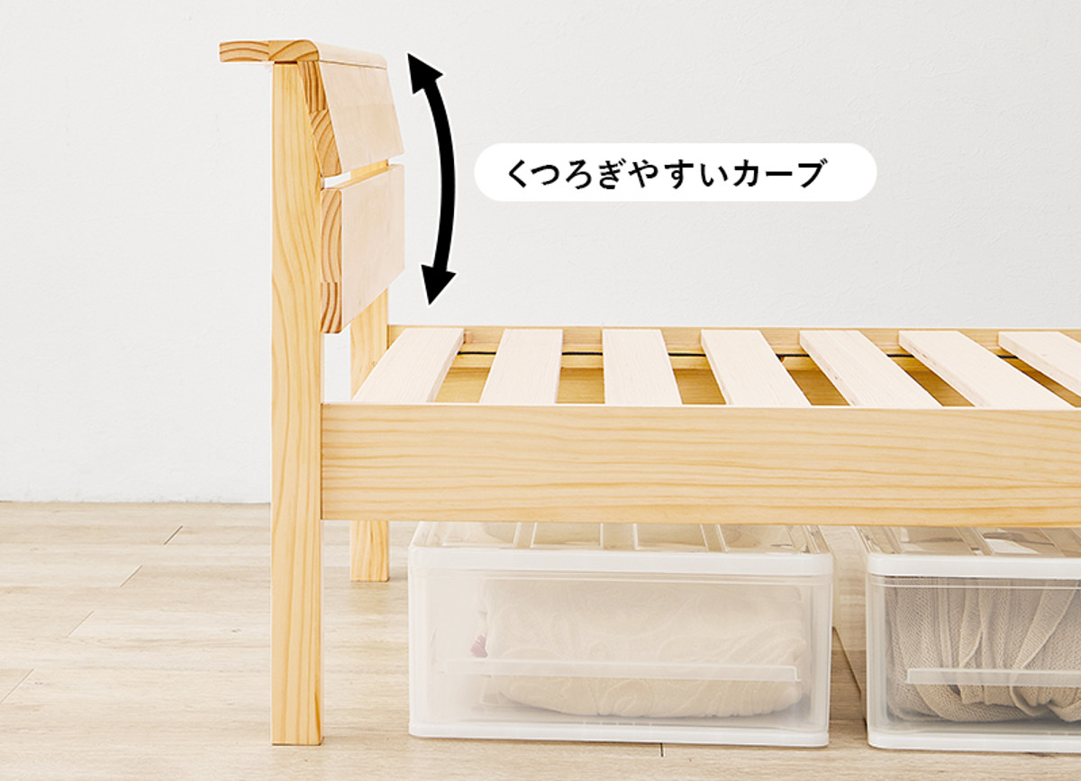 ヘッドボードは背中に沿うようにカーブしている為、背もたれとして使えます。