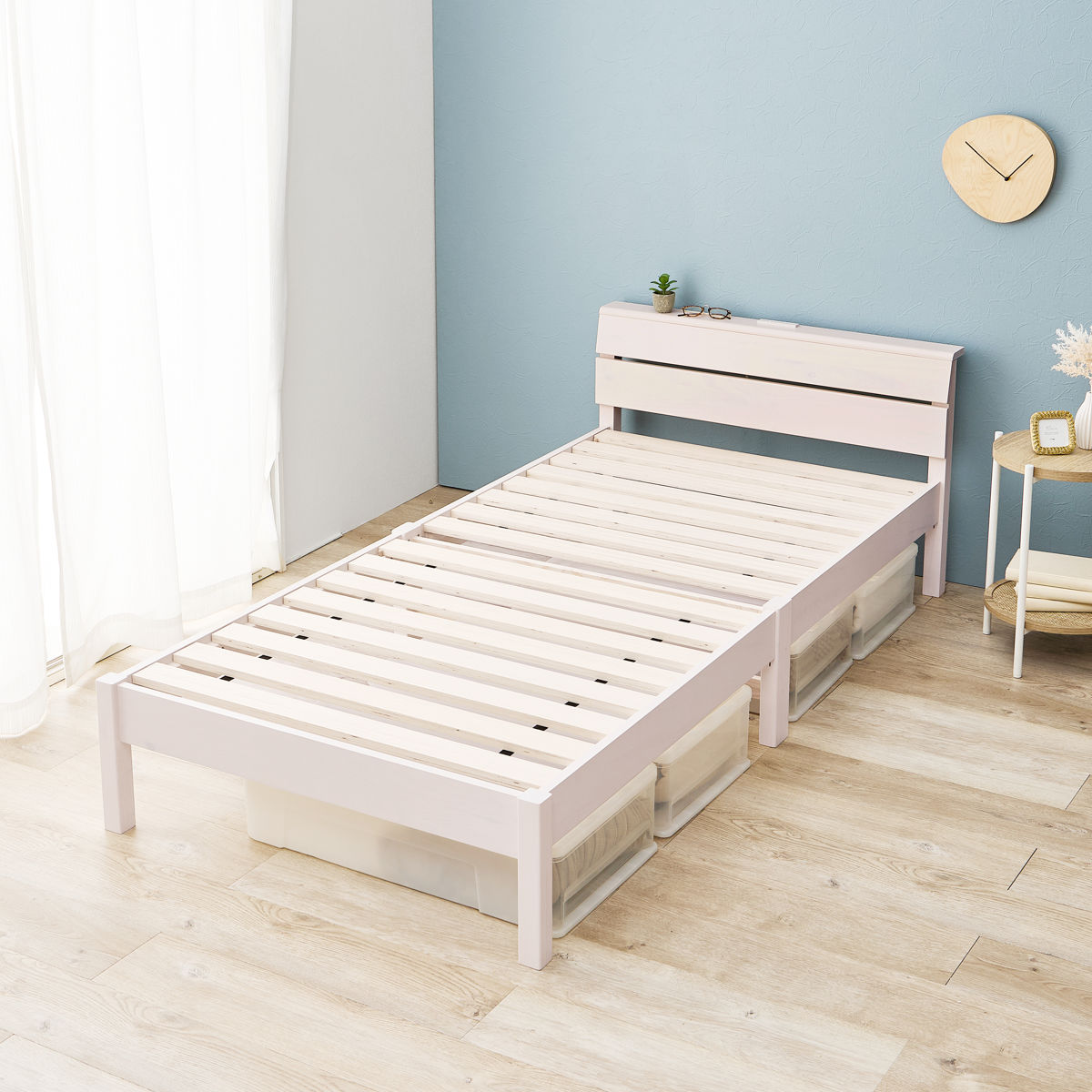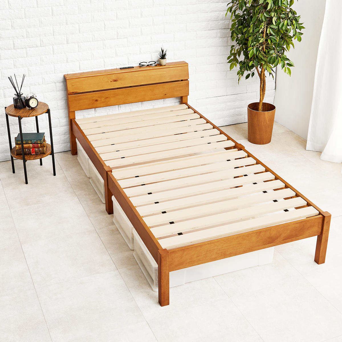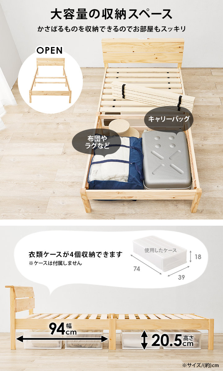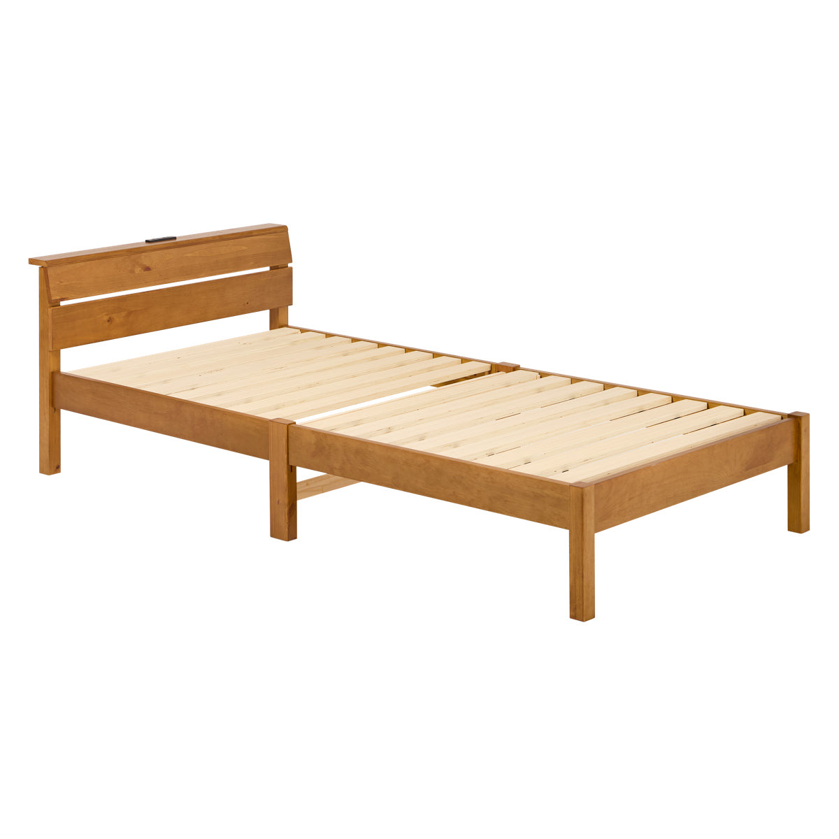 3分組立ベッド シングル 2口コンセント付 背もたれ 工具不要 天然木