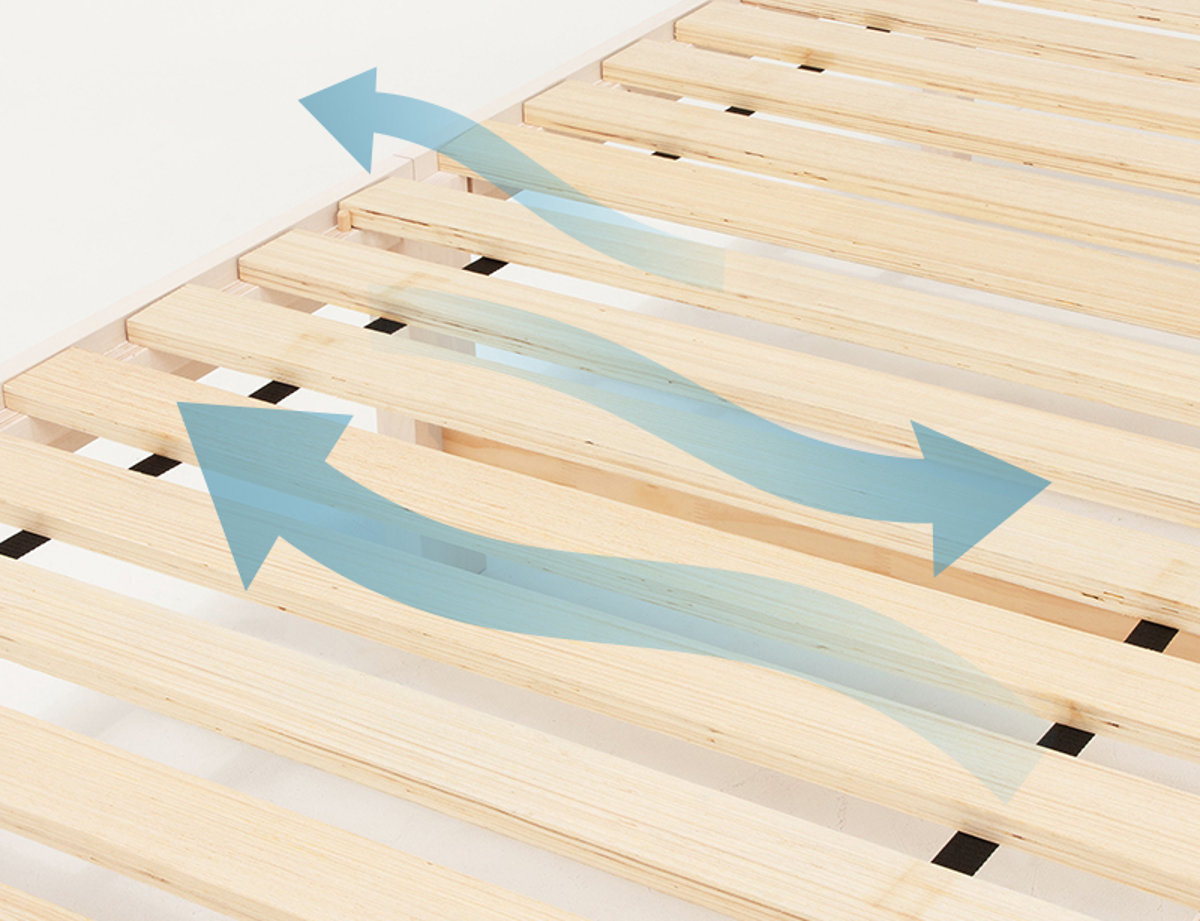 床面は通気性が良いすのこ仕様です。汗や湿気、熱を逃してくれるのでカビや菌が発生・増殖しにくい構造です。