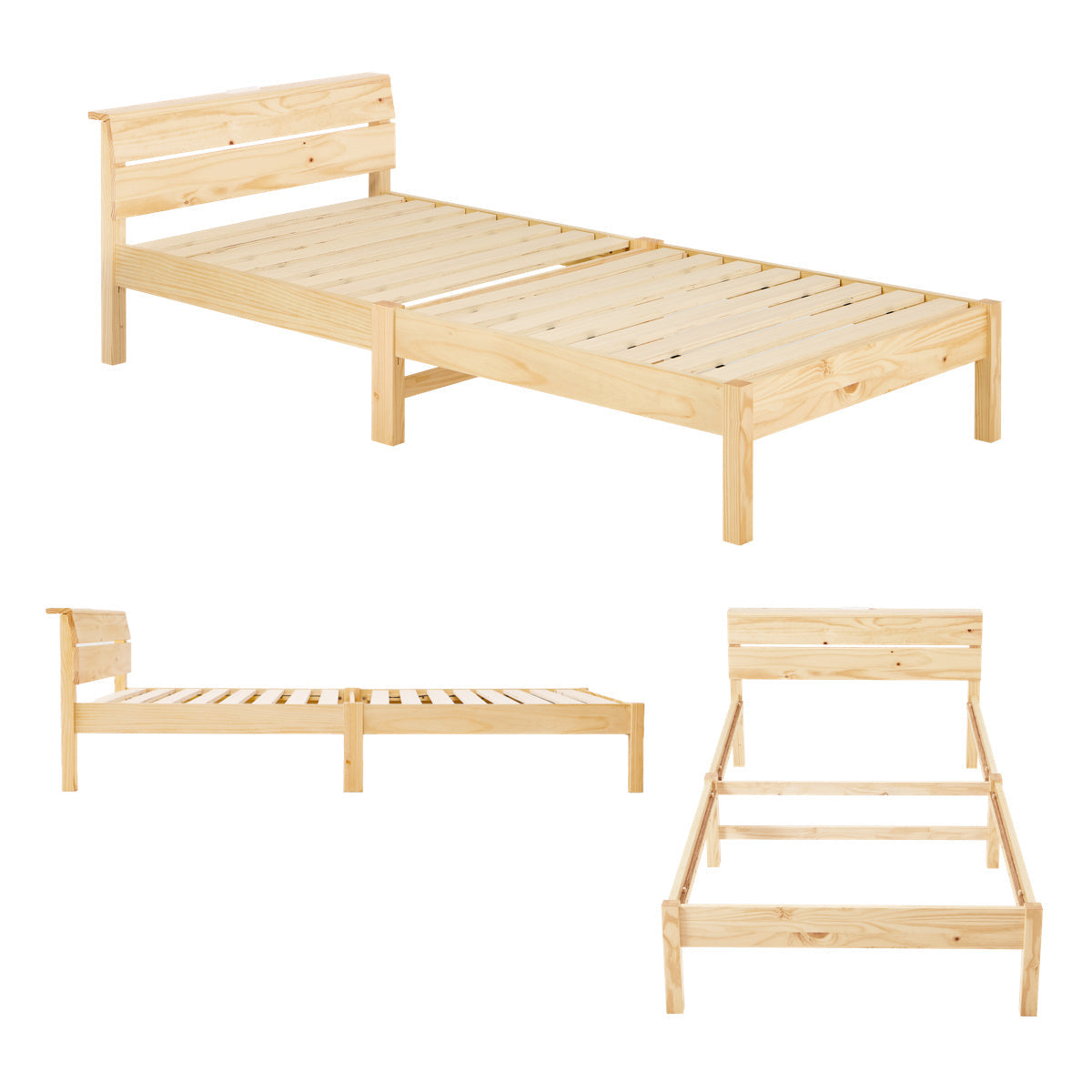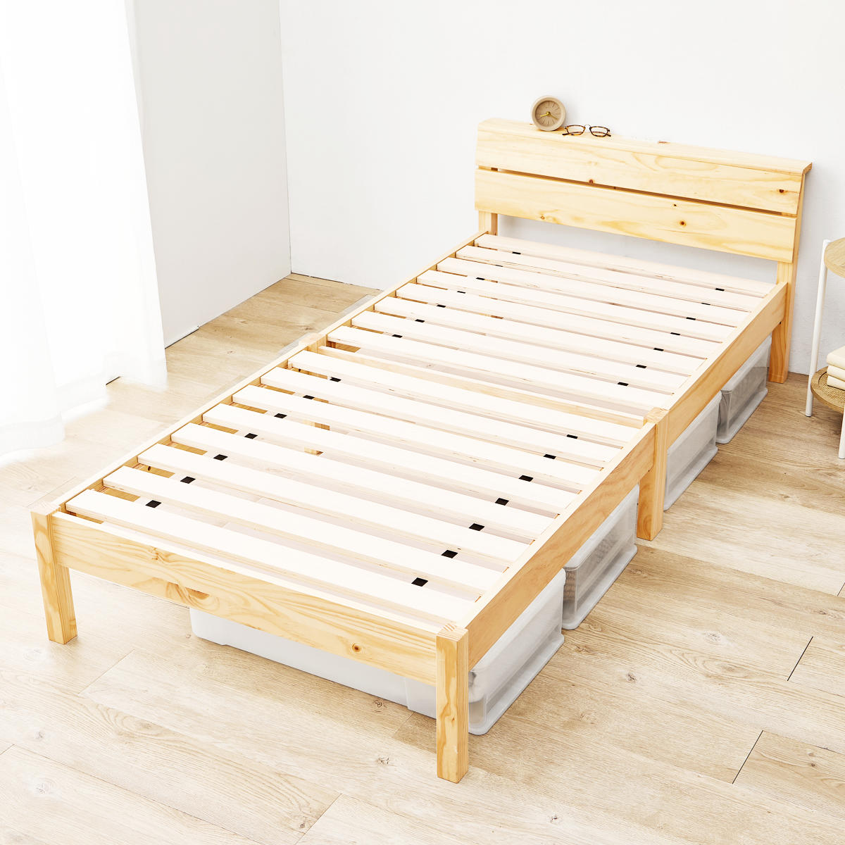 ネジも工具も不要、簡単に組み立てることができるベッドフレームです。パーツを差し込むだけなので、組み立て家具が苦手な方でもたった3分で組み立てることができます。天然木の温もりが感じられる柔らかなパイン材を使用し、美しい木目と経年による色の変化を楽しめます。