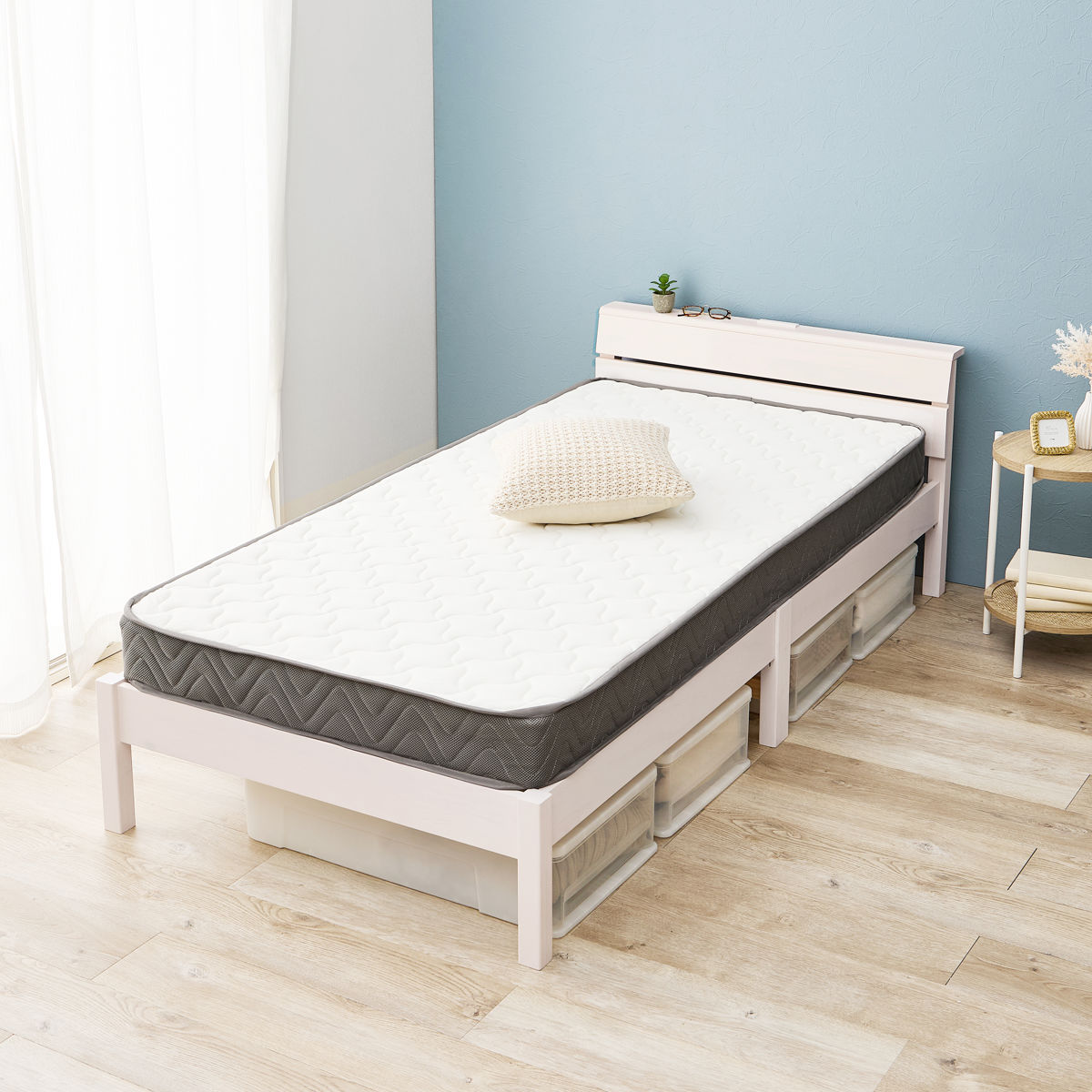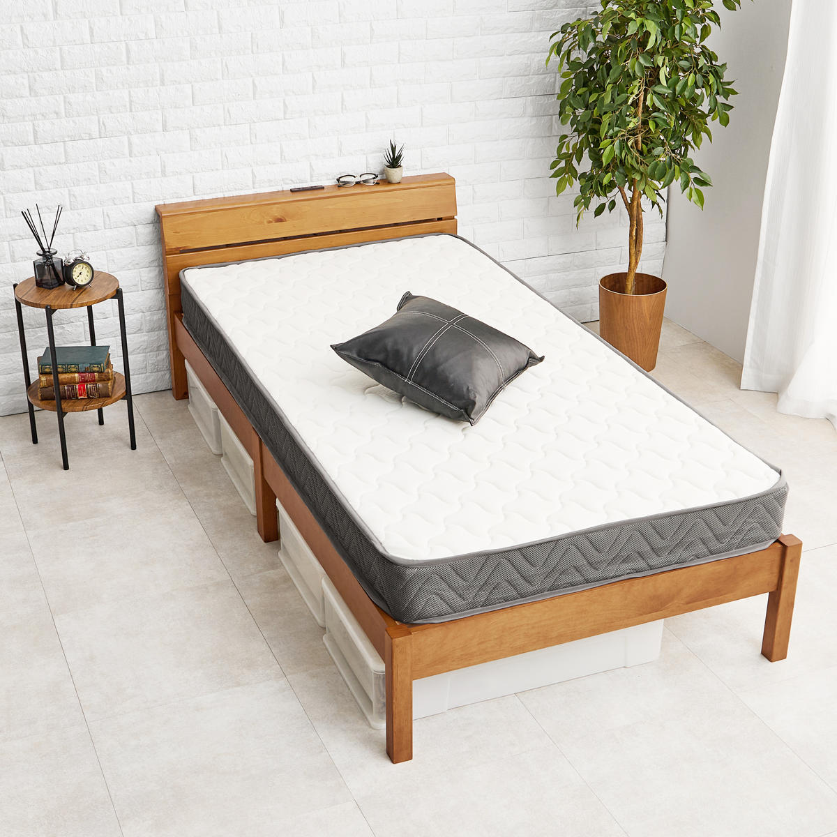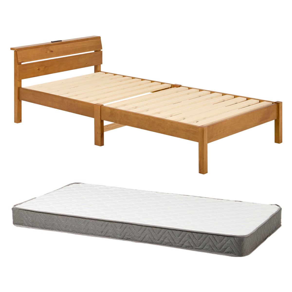3分組立ベッド シングル ボンネルマットレス付 背もたれ 工具不要 天然木